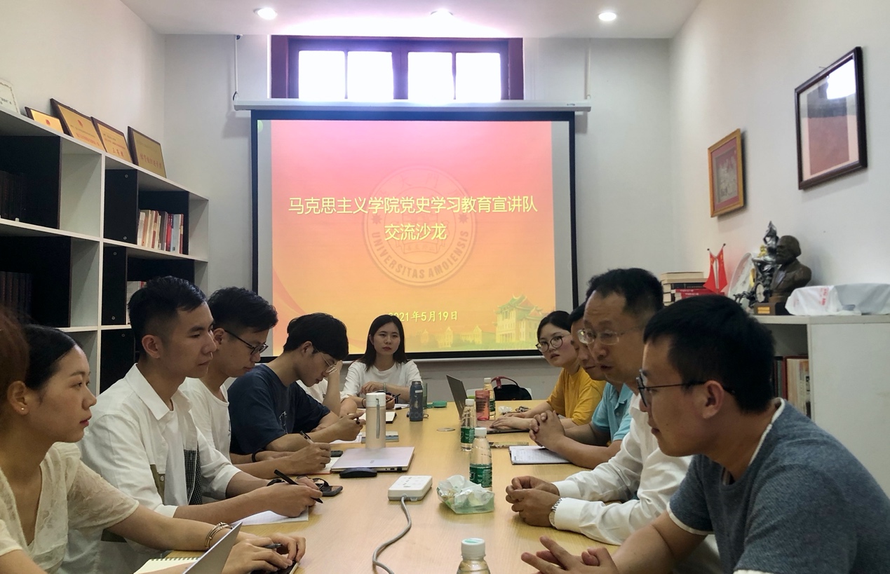 为深入学习贯彻习近平总书记在党史学习教育动员大会上的重要讲话精神,激发青年学子“知史爱党,知史爱国”的共识与行动,我院组建成立党史学习教育宣讲队。5月19日下午,宣讲队在囊萤楼225会议室举行交流沙龙,张艳涛教授、贾凯副教授作为指导老师出席了活动,蔡虎堂老师及我院党史学习教育宣讲队成员一起参加了本次活动。