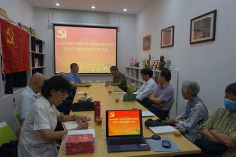退休教工支部还召开了庆祝中国共产党成立100周年座谈会暨党史学习教育专题组织生活会。学院党委书记侯利标、副书记杨建中以及退休教工支部党员十余人参加会议。会上,侯利标也向老同志们传达了学校党建工作部署和工作要求,从习近平总书记致厦门大学建校100周年的重要贺信精神、开展党史学习教育情况、《中国共产党普通高等学校基层组织工作条例》等三方面与退休党员同志们介绍交流。