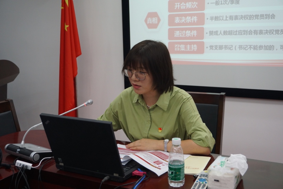 首先,江春萍以《支部党建工作常见问题解答》为主题,针对基层党支部工作中可能遇到的问题,分别从组织生活、党员干部教育培训、开展支部活动和支部重点工作四个篇章展开,就各项工作的流程和规范进行详细地讲解,并结合各个支部的实际情况进行具体分析,为今后各支部开展工作提供了参考。