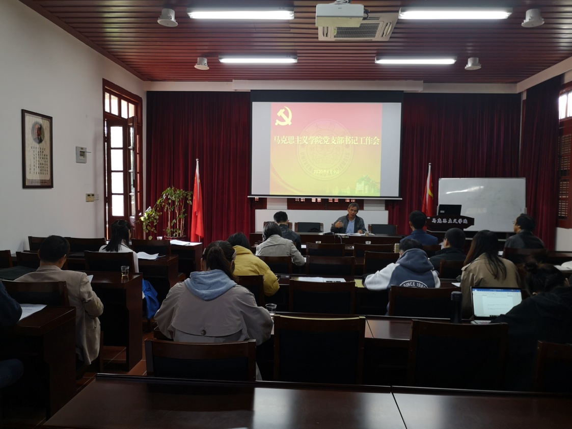 2020年1月9日上午,马克思主义学院党委在同安一号楼201会议室召开本年度第一次党支部书记会议。院党委书记侯利标主持会议,传达近期学校有关会议精神,并对本年度学院党支部建设重点工作进行部署。