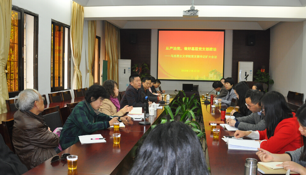 2016年2月22日上午,我院在成智二110会议室召开了主题为“加强从严治党,做好基层党支部建设”的党支部书记扩大会议。学院包括各教学、行政后勤、离退休、学生在内的各支部书记和支部委员出席了会议。会议由许和山书记主持。