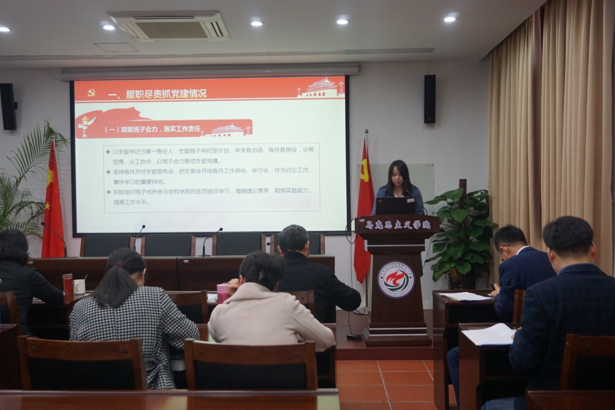 其他教工党支部和研究生学生党支部书记分别从履行党建责任情况、当前存在的突出问题及原因、下一步的工作思路和主要措施等方面展开了述职,汇报内容丰富、各有特色。张有奎副书记、原宗丽副书记、石红梅委员、张艳涛委员、杨晨委员、佳宏伟委员分别对所联系支部进行了精彩点评,从思路方法、落实程度、宣传力度、人心聚合、优势特色等视角给予了各支部不断改进工作的建议。