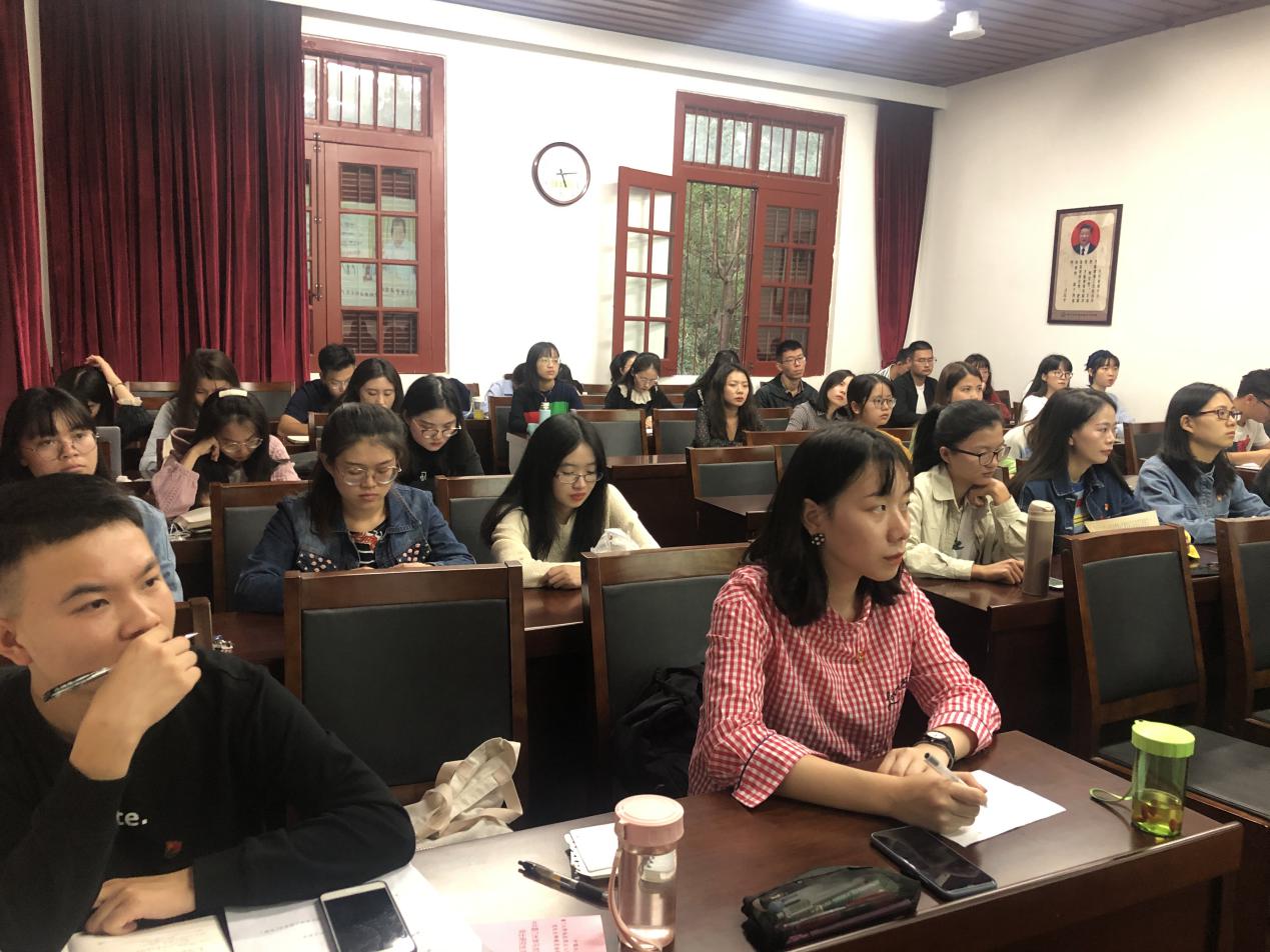 2019年11月11日下午,学院党委书记侯利标在同安楼201教室作“筑牢信仰之基,奋进伟大时代”专题党课。学院2019级全体硕士研究生参加了本次党课。