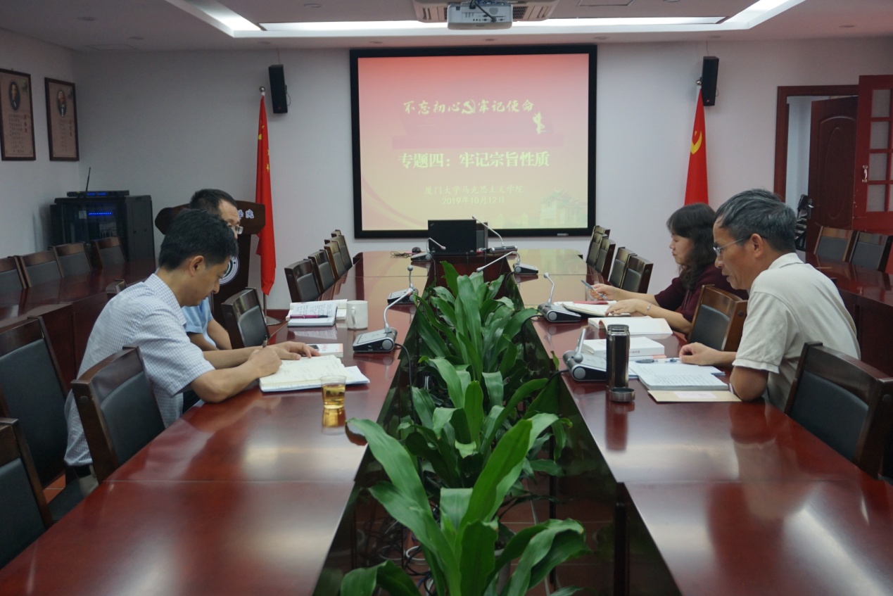 2019年10月12日下午3点,我院在囊萤楼302会议室开展“不忘初心、牢记使命”主题教育第四专题集中学习,学习围绕专题“牢记宗旨性质”展开,院党委书记侯利标,常务副院长、党委副书记张有奎,党委副书记原宗丽,副院长张艳涛参加此次学习。