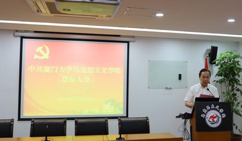 2018年5月23日下午,中国共产党厦门大学马克思主义学院党员大会在囊萤楼312报告厅隆重召开。大会的指导思想和主要任务是:高举中国特色社会主义伟大旗帜,以邓小平理论、“三个代表”重要思想、科学发展观、习近平新时代中国特色社会主义思想为指导,深入贯彻落实党的十九大精神,围绕学校“两个一百年”奋斗目标,认真回顾总结学院党的建设和各项事业发展成就,谋划学院今后发展规划、目标任务和思路举措,选举产生学院新一届党委,动员全体党员和师生员工,坚持社会主义办学方向,不忘初心、牢记使命,真学、真懂、真信、真用马克思主义,充分发挥高校立德树人主渠道作用,培养社会主义的建设者和接班人,为建成马克思主义理论一流学科和一流学院不懈奋斗。