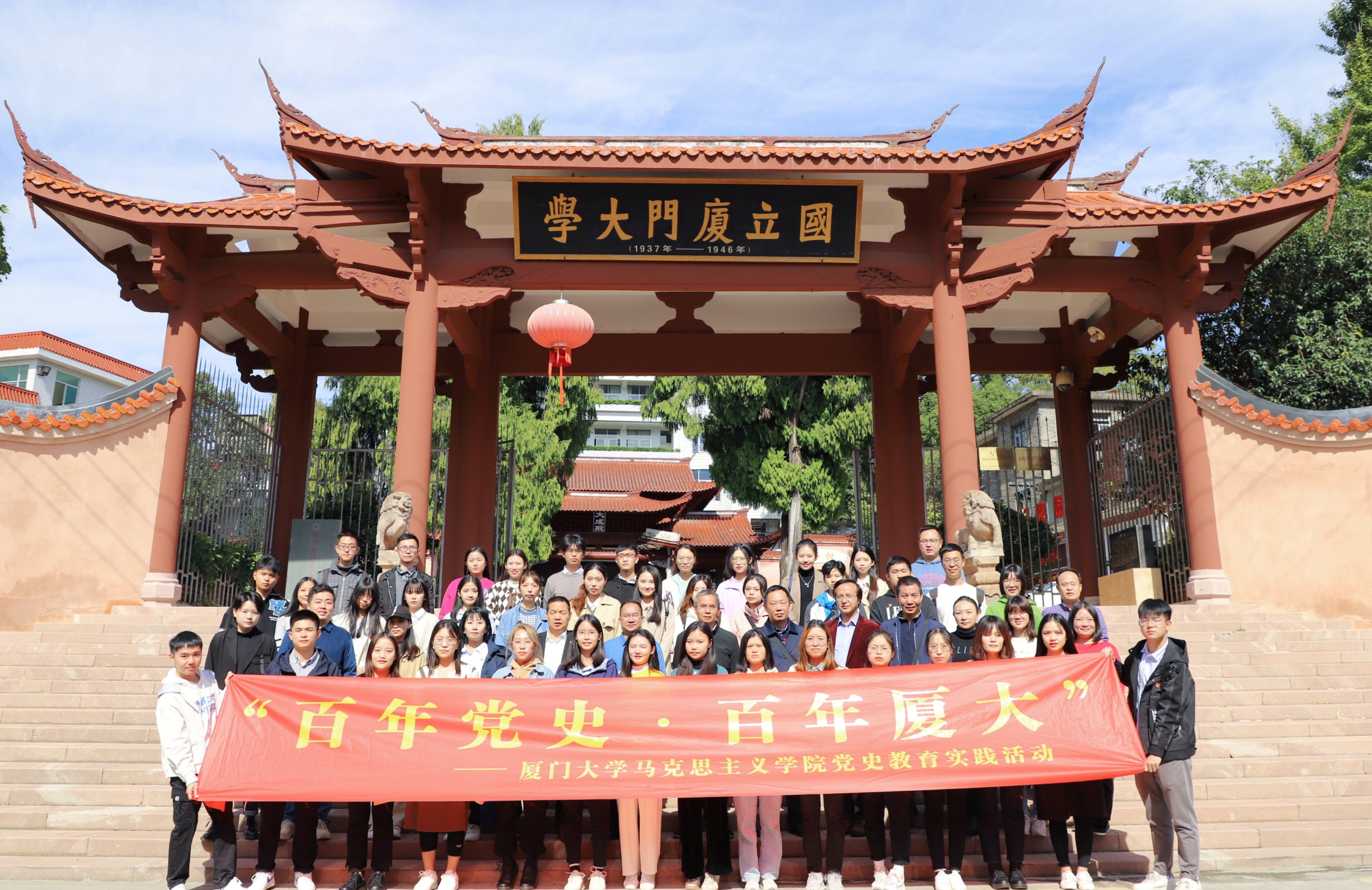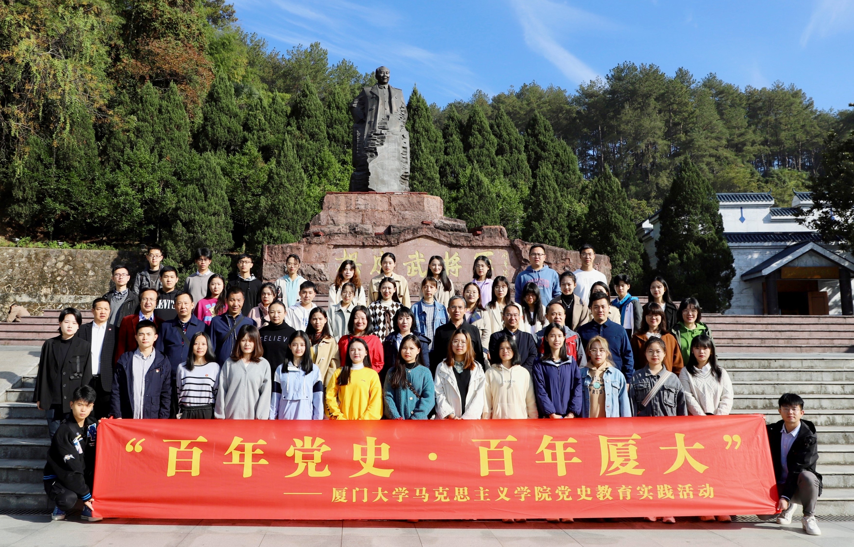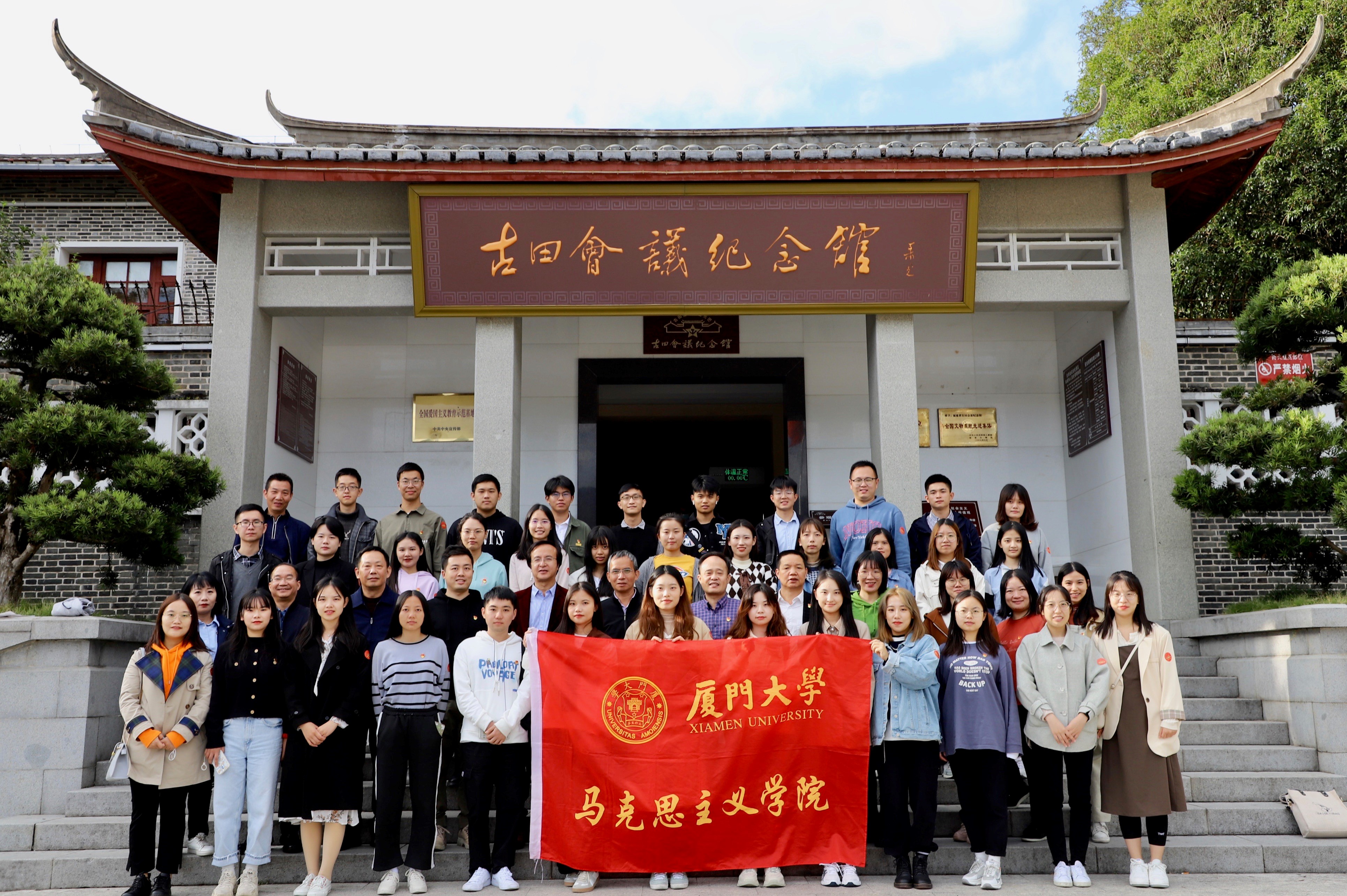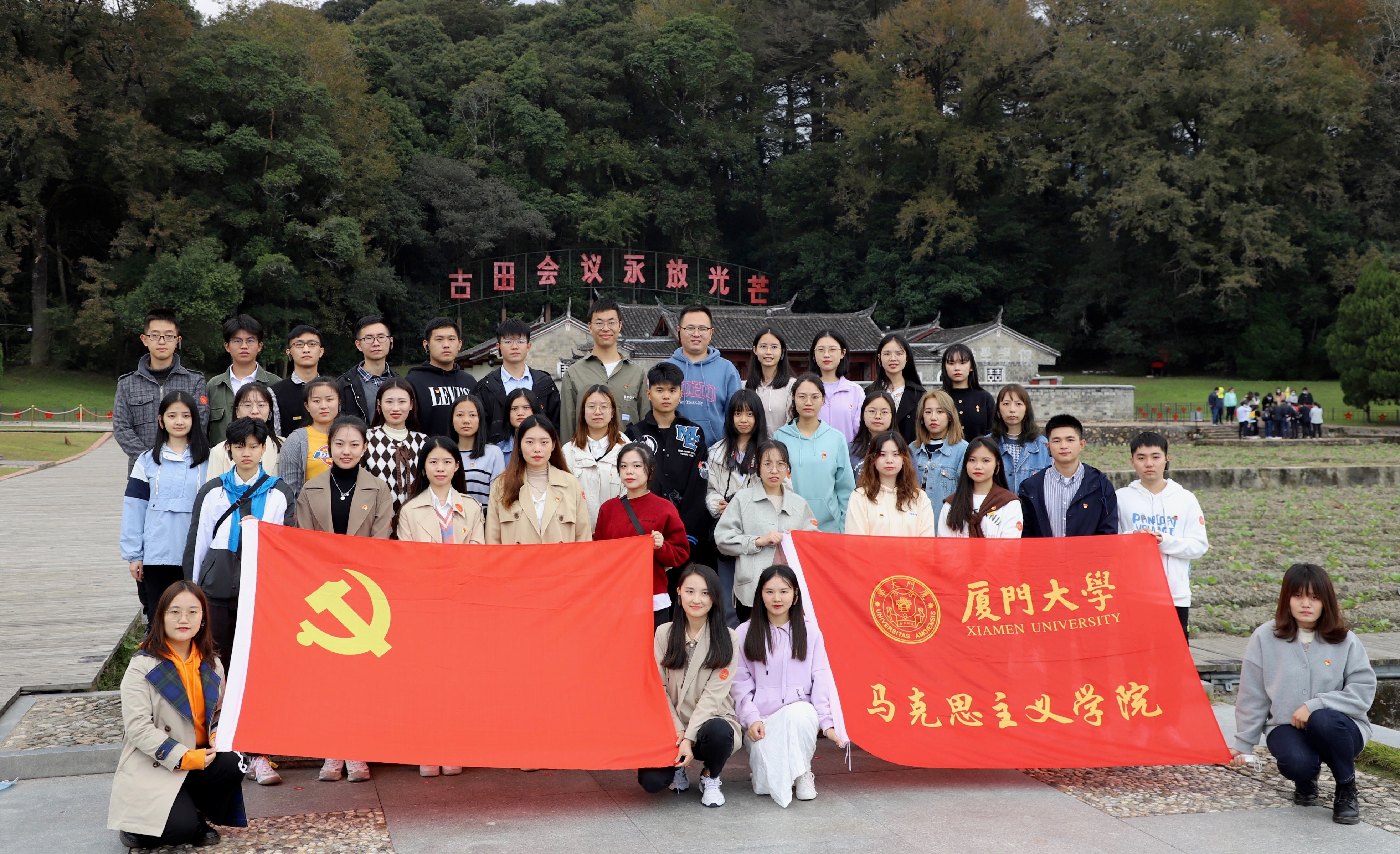 为庆祝中国共产党成立100周年和厦门大学建校100周年,扎实推进党史学习教育,11月13-14日,马克思主义学院党委组织师生党员、入党积极分子、学生骨干赴福建省龙岩上杭古田和长汀两地开展“百年党史·百年厦大”党史教育实践活动。活动期间,师生通过实地参观、现场教学、交流研讨、分享学习心得等多种形式回顾党的历史,踏寻先辈足迹,弘扬革命精神,进一步感悟使命担当,涵养家国情怀。