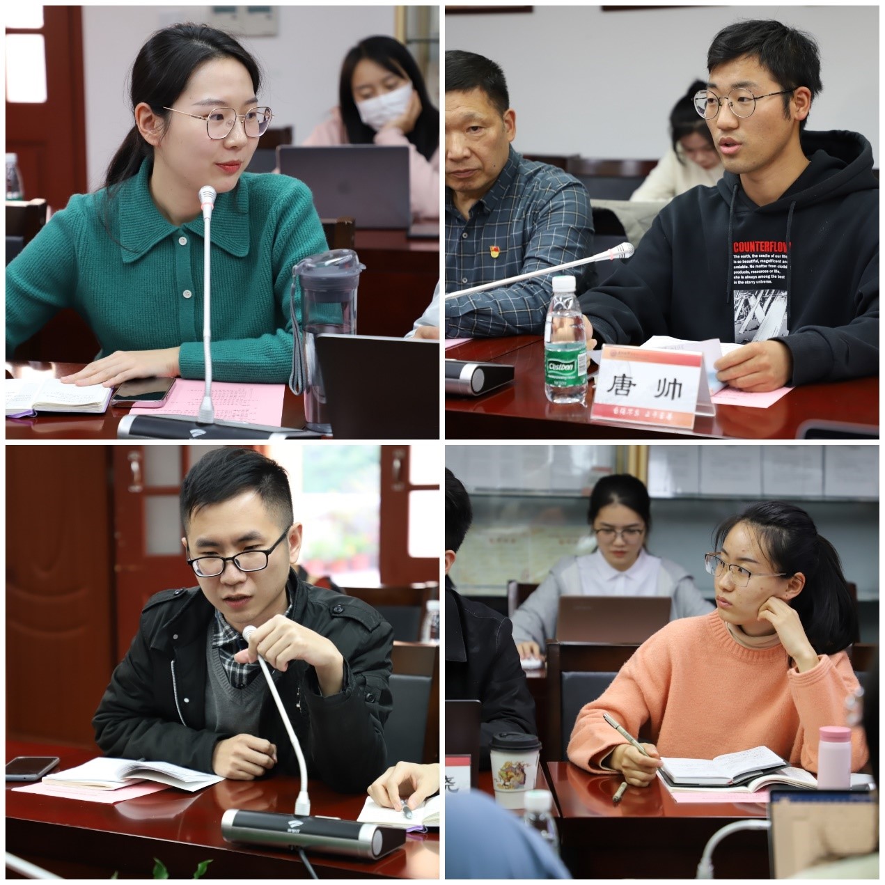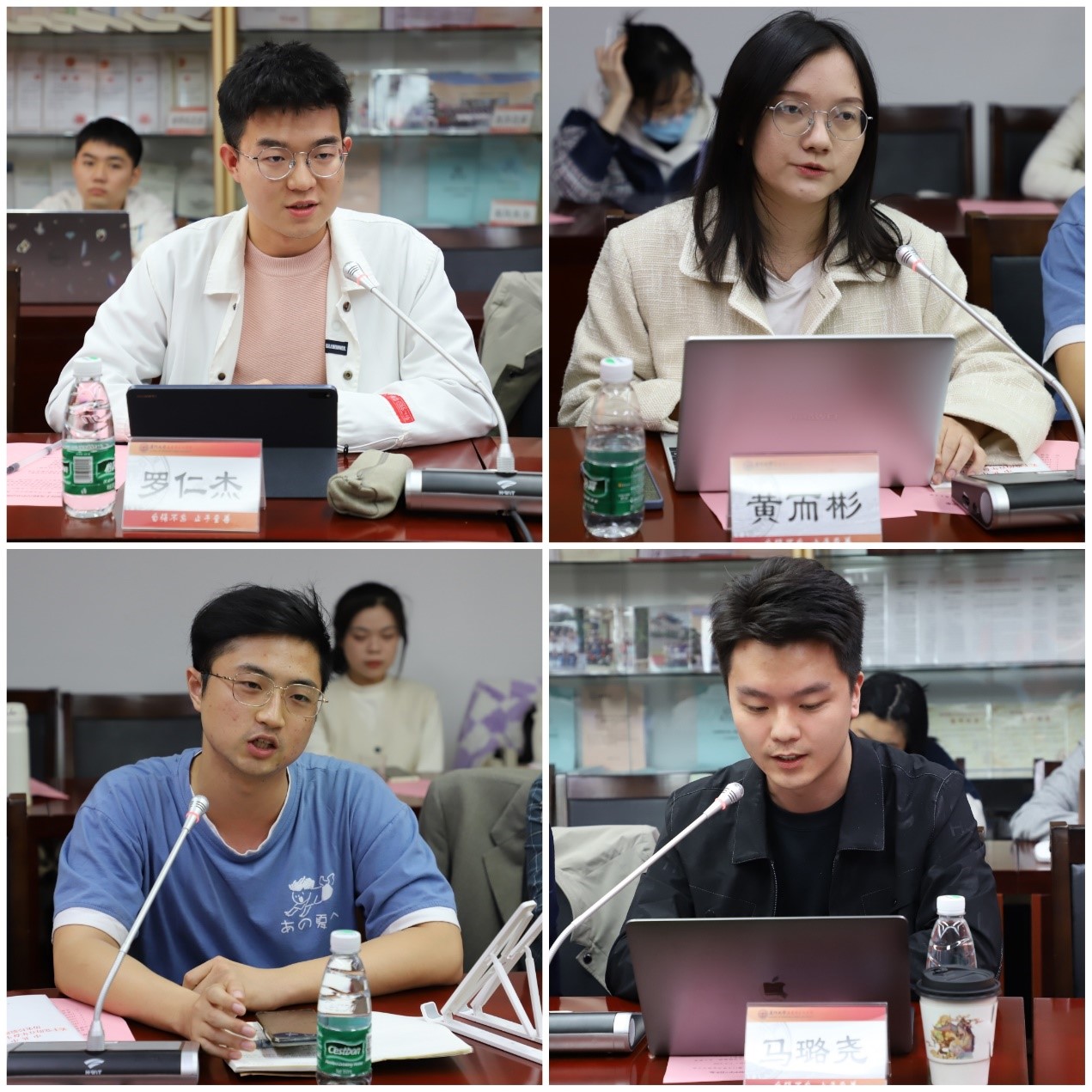 研究生代表依次发言。罗仁杰同学从现代化的共性与个性、资本主义现代化和中国特色社会主义现代化的本质区别两个角度分享了自己对中国式现代化道路的理解。马路尧和魏翔宇两位同学分别从“历史关键节点”和“三个历史决议的形成”两个方面阐述了自己对“两个确立”的认识。黄而彬同学围绕“为什么是中国共产党、为什么是中国特色社会主义道路”两个问题,对中国共产党百年奋斗的历史意义进行了深刻解读。唐帅同学结合自己的学习经历,从什么是优秀传统文化、为何要将马克思主义基本原理与传统文化结合、如何将马克思主义基本原理与传统文化结合三个方面分享了自己对习近平总书记关于“两个结合”的重要思想的理解。