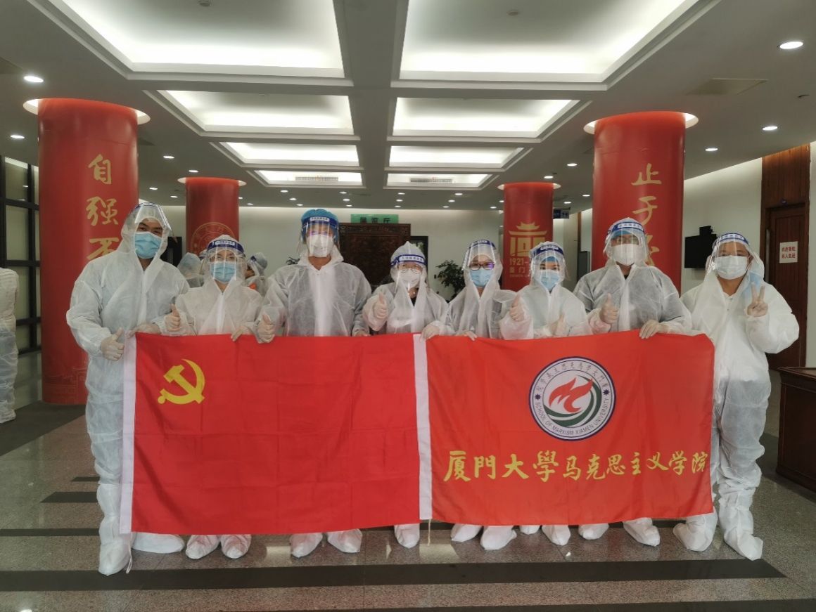 马克思主义学院全体党员师生把初心写在行动上,把使命落在岗位上。勠力同心,众志成城,为阻击新冠疫情、保护师生生命健康安全、维护鹭岛美丽景色贡献自己的力量!