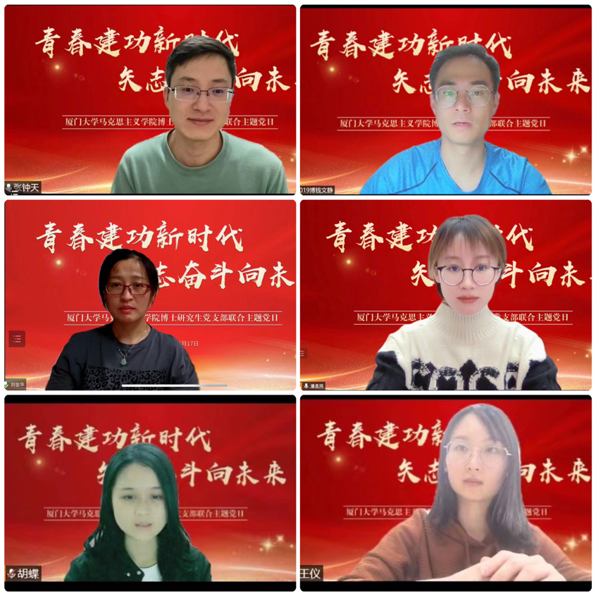 在党员代表发言环节,2021级博士生胡蝶、王仪同志,2020级博士生潘思同、刘金华同志和2019级博士生钱文静、张钟天同志分别围绕两篇讲话分享自己的学习体会。有的还结合自身学术研究方向,思考论文选题如何与国家需要相结合等问题。