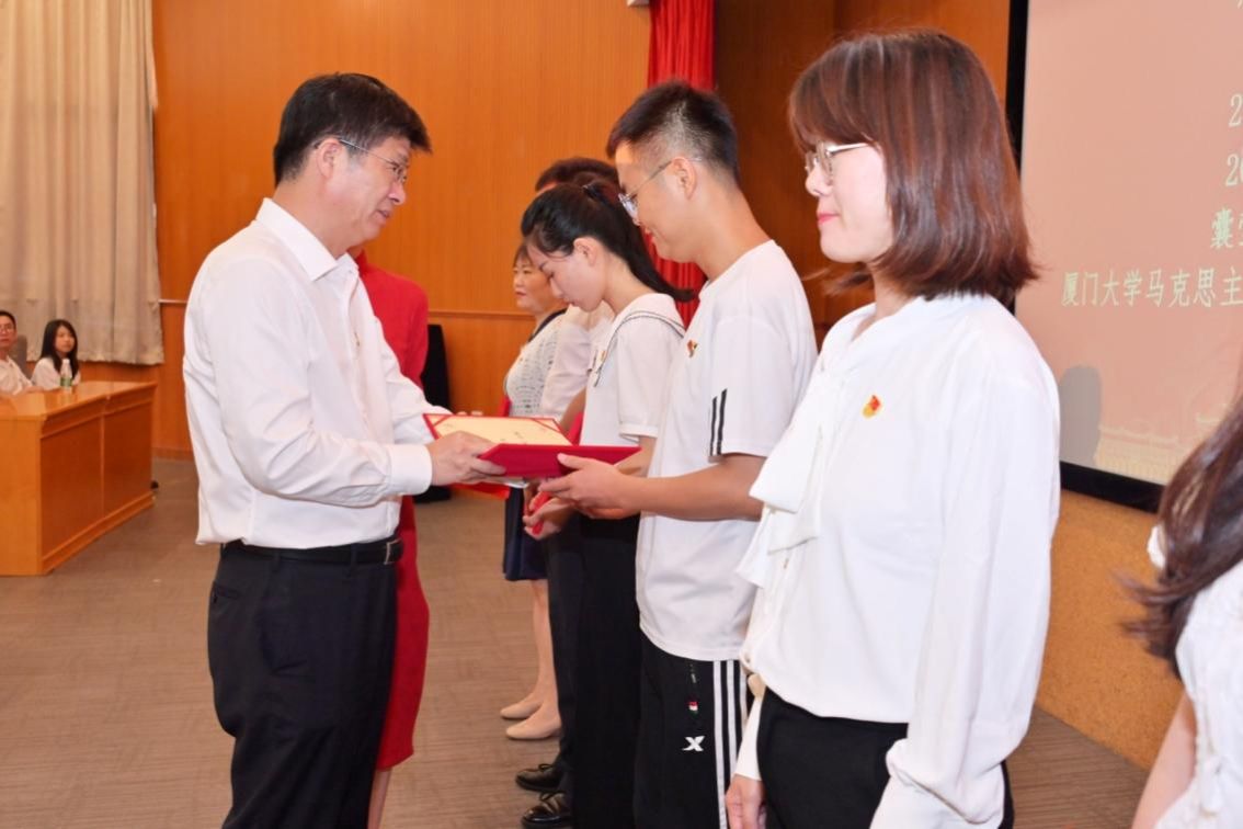 张有奎宣读《关于表彰2021-2022年优秀共产党员、优秀党务工作者和先进基层党组织的决定》。根据各支部评选推荐、学院党委会议研究,6个先进基层党组织、24名优秀共产党员和8名优秀党务工作者获得表彰。随后,徐进功、苏劲、何其颖、张艳涛分别为获得表彰的先进基层党组织和优秀个人代表颁发荣誉证书。