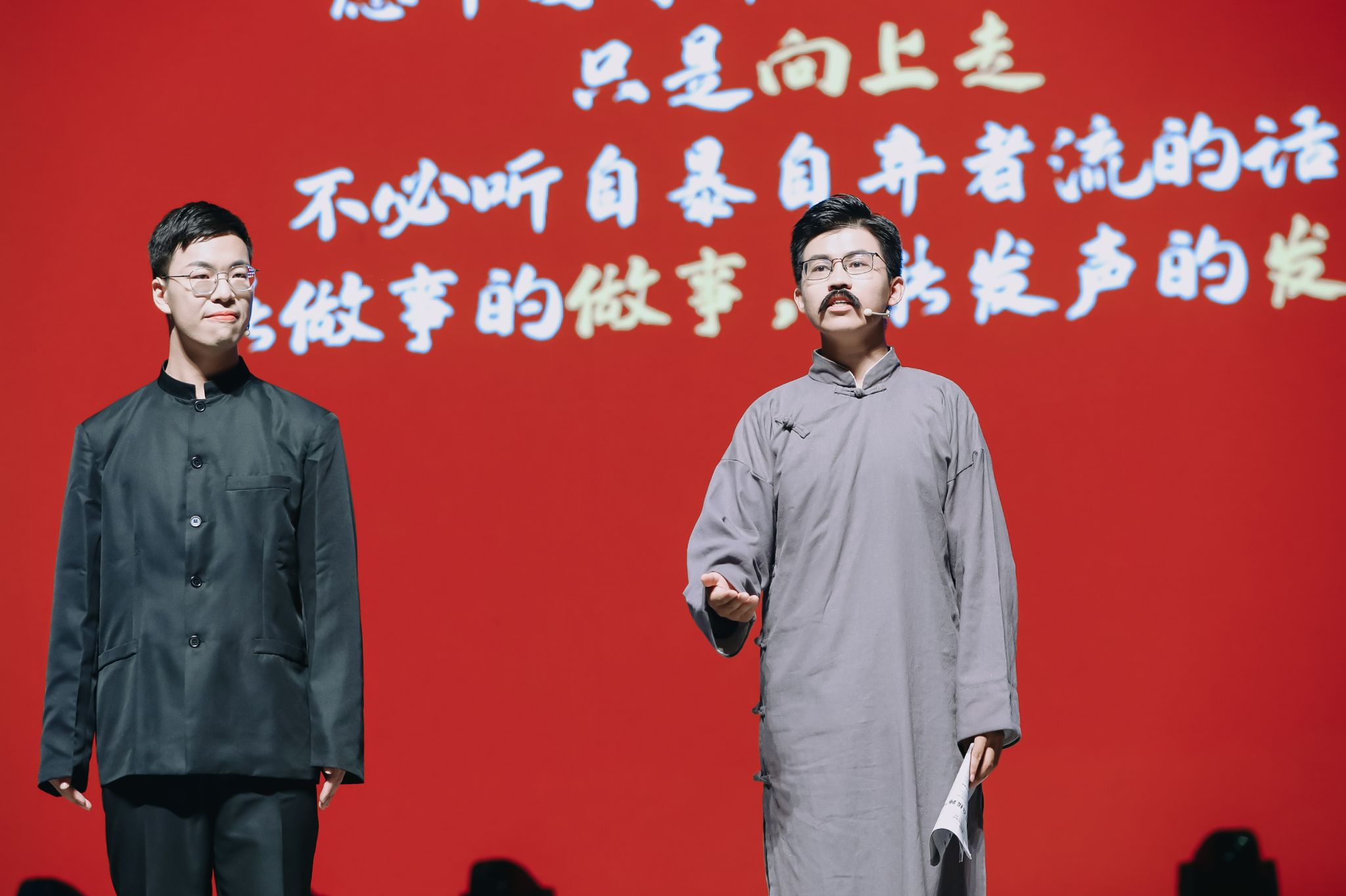 周思远和陈天来同学通过一场精彩的话剧,让一个致力于塑造新文化的鲁迅先生和一个致力于创造新世界的扬才学长跃然台上。百年前,鲁迅与罗扬才结下深厚情谊,他们一起传播新思想、引领新文化、塑造新青年。尤其是罗扬才,作为厦门大学“革命精神”的代表,为着革命愿意奉献自己的满腔热血。百年来,如罗扬才般的中国青年层出不穷,他们一路荆棘走来,书写着华夏未来。杨雨岚同学通过演唱原创歌曲《我看见》,将曾经的先辈与今天的青年紧密相连,既道出了百年来的时光变换,又唱出了有志青年的初心如磐。铿锵有力的话语、饱含深情的旋律,赢得了台下阵阵掌声。