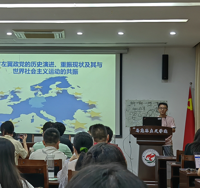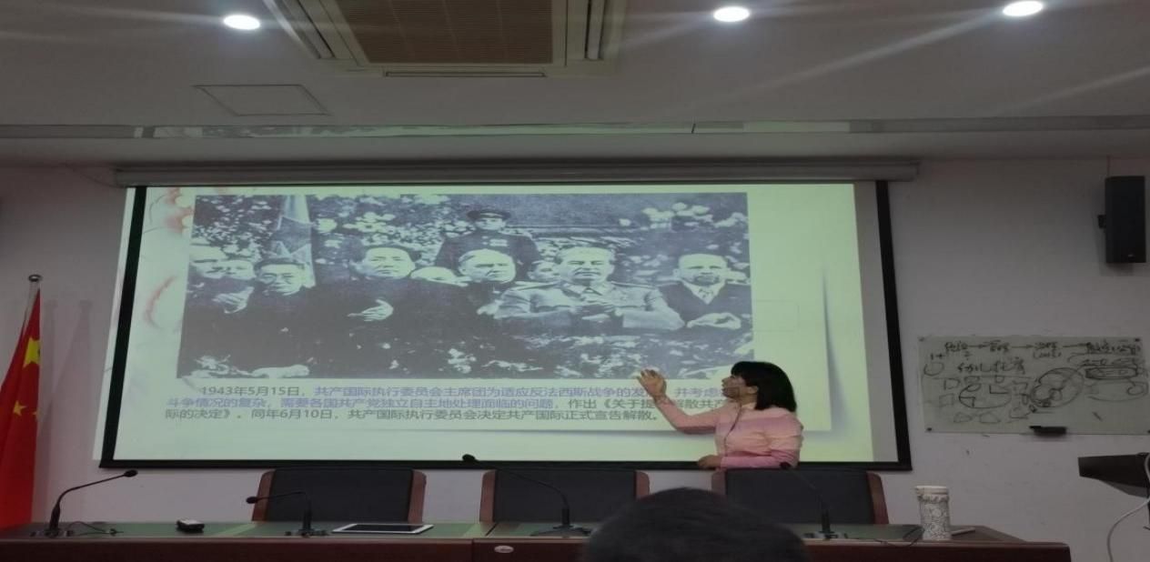 中国化教工支部书记吴茜作题为《从共产主义者同盟到欧洲激进左翼政党家族——世界社会主义运动200年历史回溯》讲座,为党员师生们勾勒了从19世纪共产主义者同盟、国际工人协会到21世纪欧美激进左翼民粹主义政党运动波澜壮阔、跌宕起伏的历史画卷以及学术前沿问题。