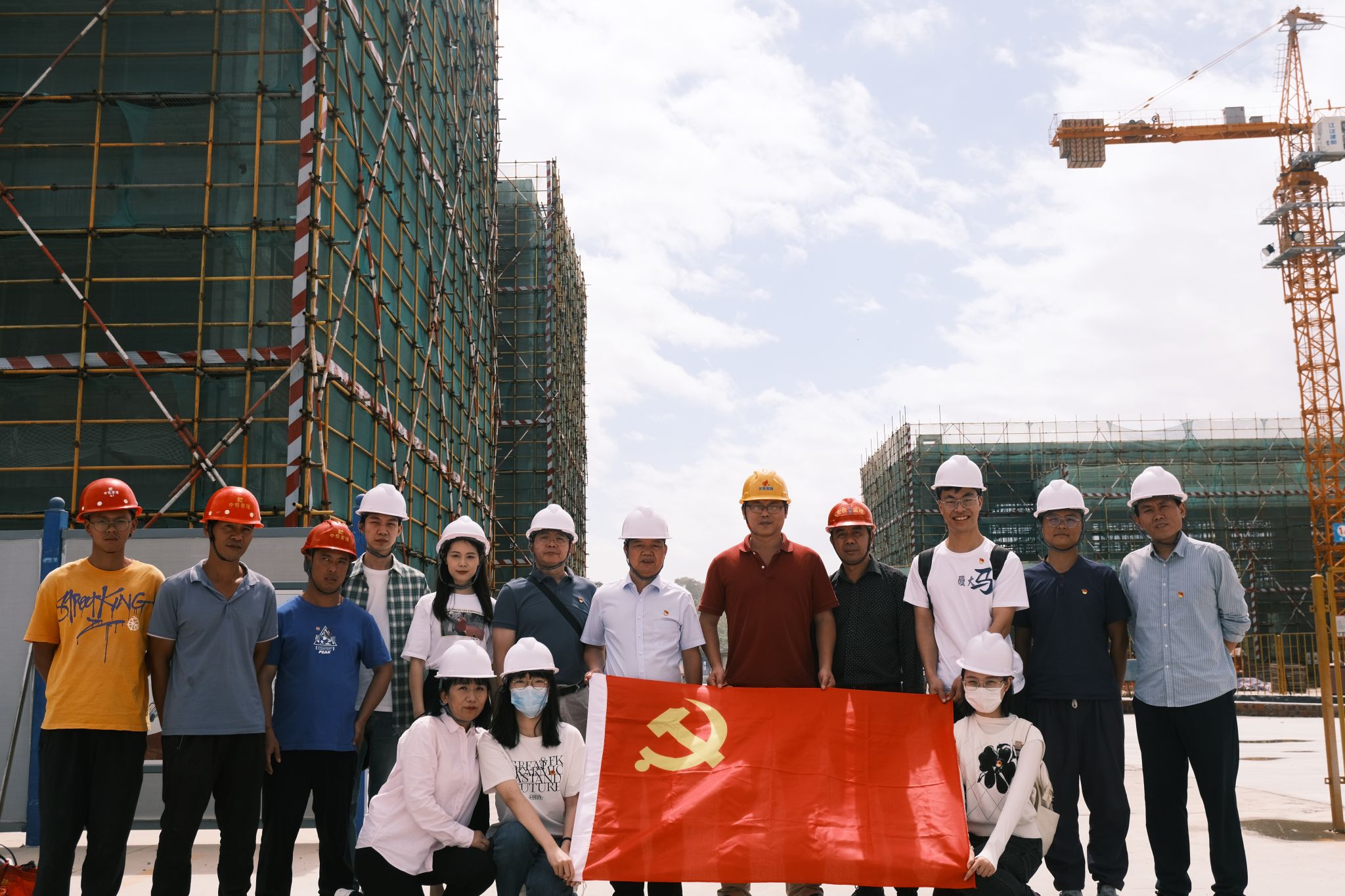 座谈后,李午智经理带领大家参观同翔高新城工地,实地考察了解当地住建项目施工建设情况。师生党员深入建筑工人工棚进行实地考察和亲切交流。之后,前往火炬集团高科技创新园区美峰创谷进行考察参观,感受到现代化样板办公楼的高科技、时尚元素。
