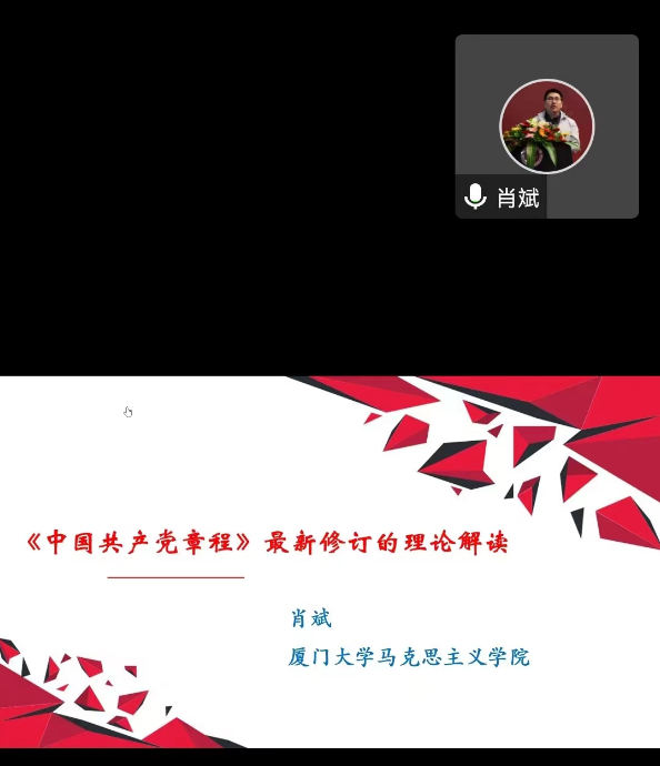 为深刻领会二十大党章修正案的重大意义与重要内容,2023年1月11日上午,马克思主义基本原理教工党支部学习贯彻党的二十大精神系列活动之“支部书记讲党课”第二期活动以线上方式展开。