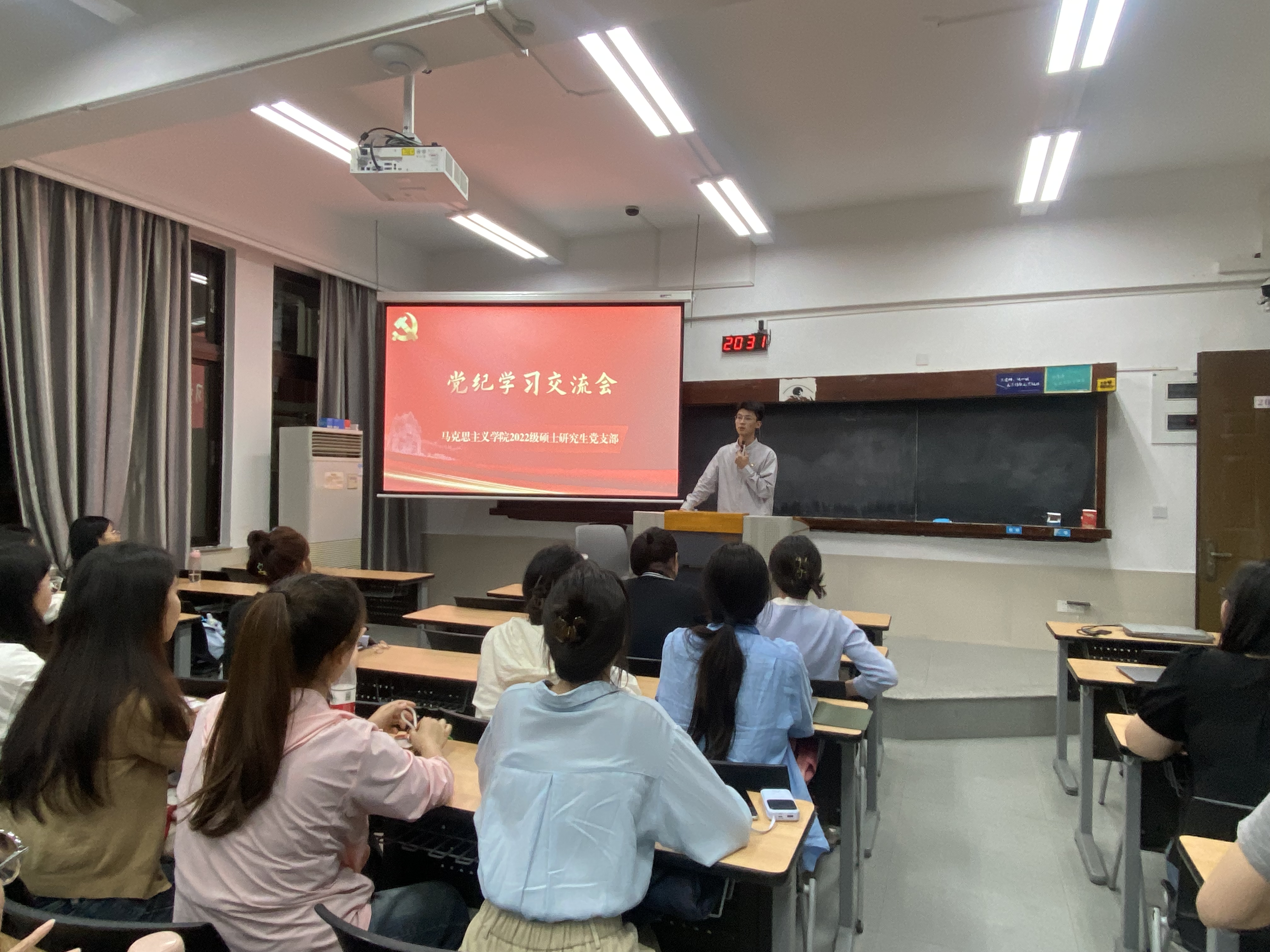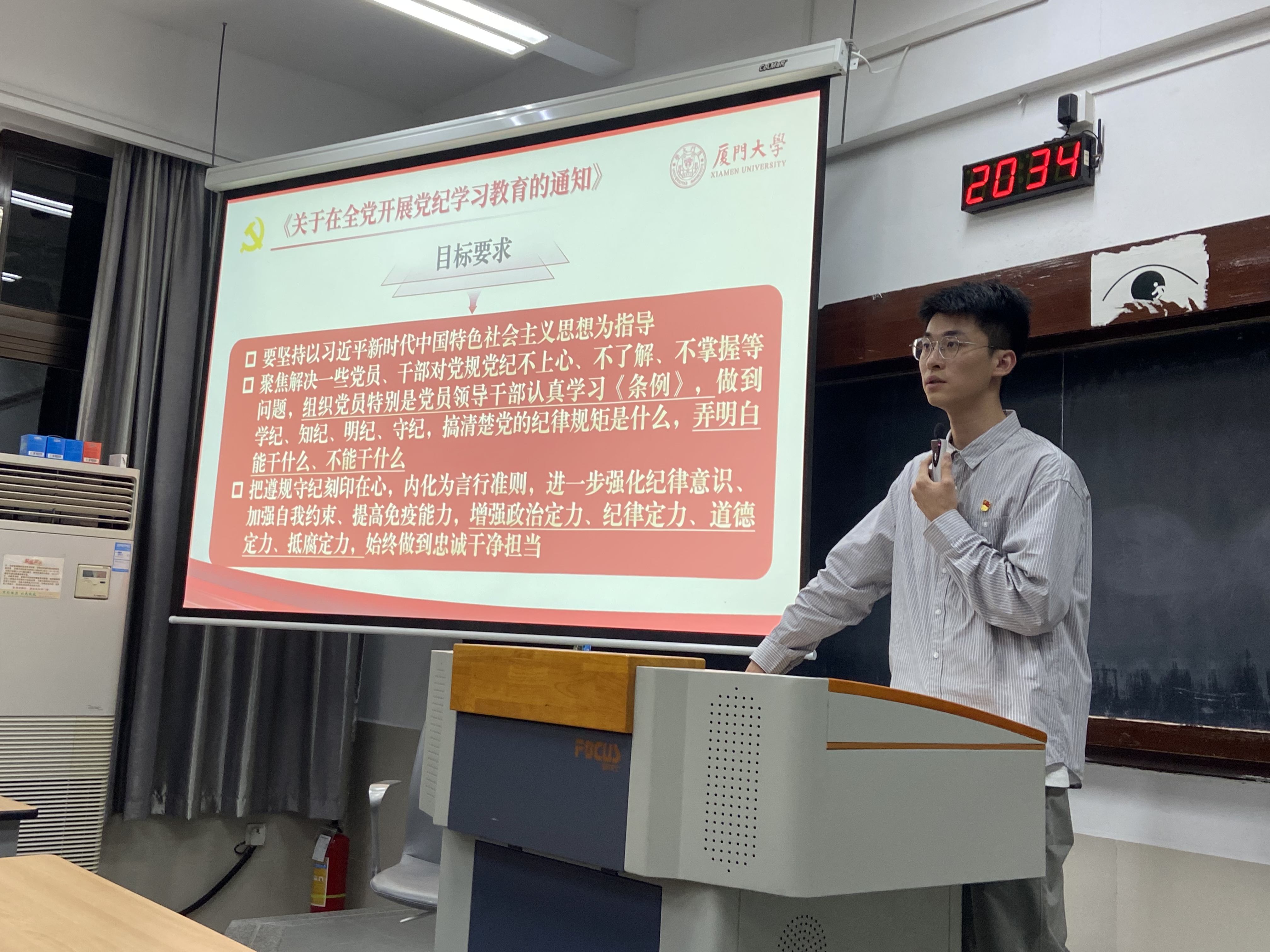 为深入开展党纪学习教育,组织党员深入学习贯彻新修订的《中国共产党纪律处分条例》(以下简称《条例》),增强党员的纪律意识和规矩意识,2024年5月13日,2022级硕士研究生党支部在南强二206教室开展党纪学习教育交流会。支部党员和入党积极分子共50余人参加。