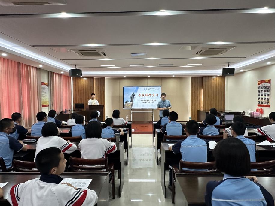 5月13日,师生走进厦门市第十一中学,以“嘉庚精神”为主题为该校团员带来一场别开生面的主题宣讲。宣讲活动中,我院2023级博士研究生党支部党员简智荣作为主讲人介绍了陈嘉庚先生的生平事迹和对教育事业的杰出贡献,讲述了陈嘉庚先生创办学校、支持海外华人教育、倡导教育救国的故事,使同学们深刻感受“嘉庚精神”的实质内涵,并通过互动交流激励同学们传承“嘉庚精神”,为国家的发展贡献青春力量。