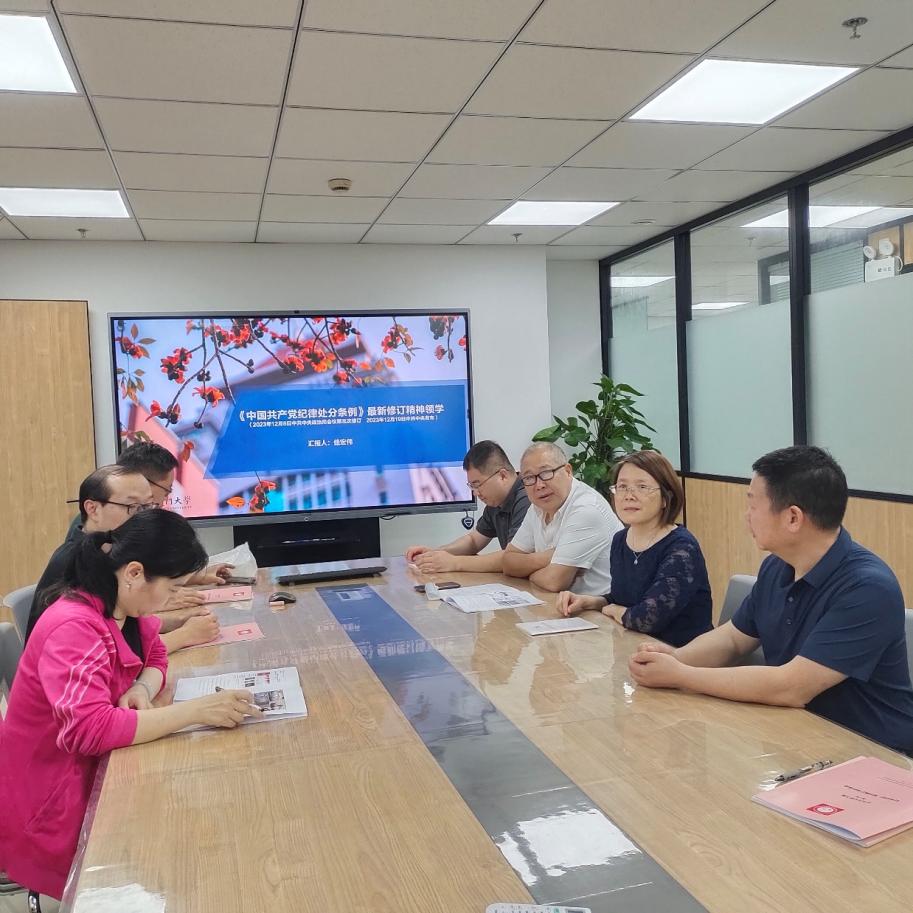 2024年5月22日下午,中国近现代史教工党支部在厦大西村206研讨室开展“书记讲党课”活动,组织党员深入学习贯彻新修订的《中国共产党纪律处分条例》(以下简称《条例》)。支部全体党员参与学习。
