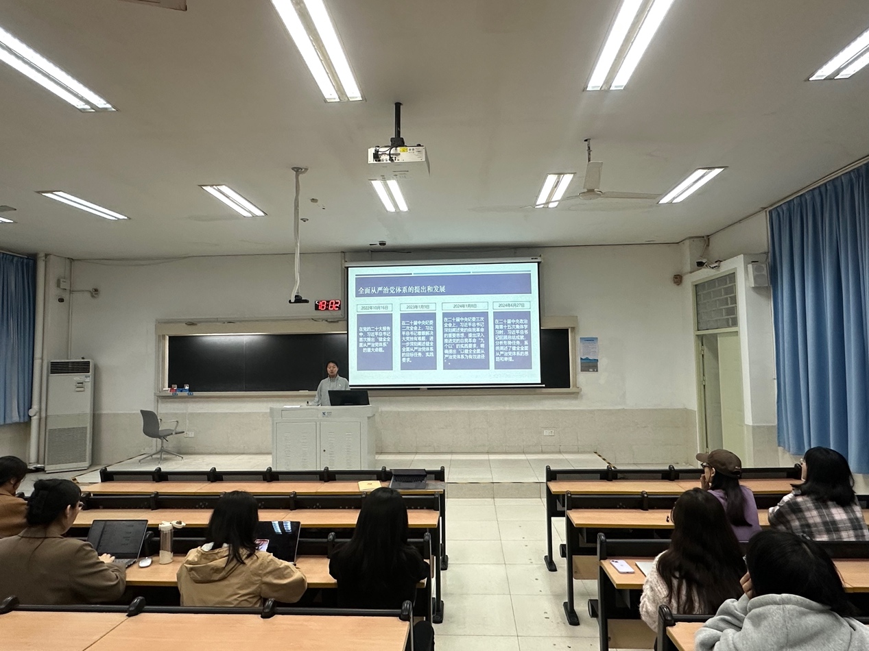 程雨欣同志对“全面从严治党体系”的话语变迁展开了简要的论述。从“全面从严治党”到“全面从严治党体系”,意味着全面从严治党的各项措施应做到统筹规划、一体推进、关联互动,构成一个有机整体。她认为,作为马院学子,必须更要深入学习贯彻习近平总书记关于党的建设的重要思想、关于党的自我革命的重要思想,驰而不息推进全面从严治党,不断健全全面从严治党体系。