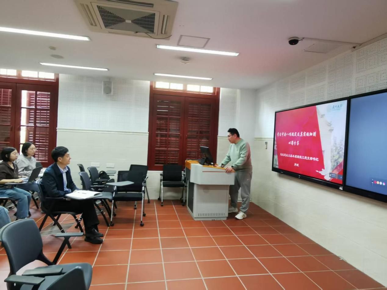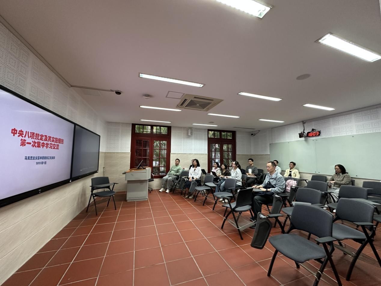 2025年4月7日下午,马克思主义基本原理教工党支部在囊萤楼109教室开展“书记讲党课”活动,组织党员深入学习贯彻中央八项规定及其实施细则。支部全体党员参与学习。
