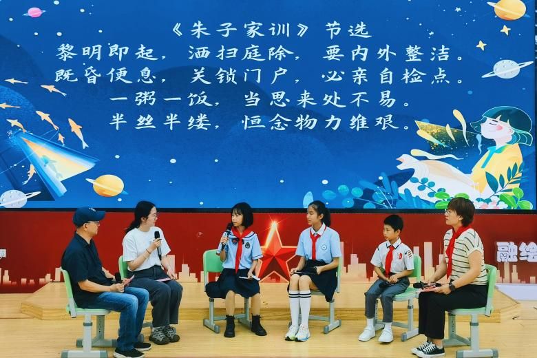 活动当天,在“榜样共读”环节,2023级硕士研究生第一党支部书记林丽佳作为开书嘉宾登台发言,与现场作家、企业代表及中小学学生代表共同阅读《朱子家训》,并围绕阅读感悟进行分享与互动交流。