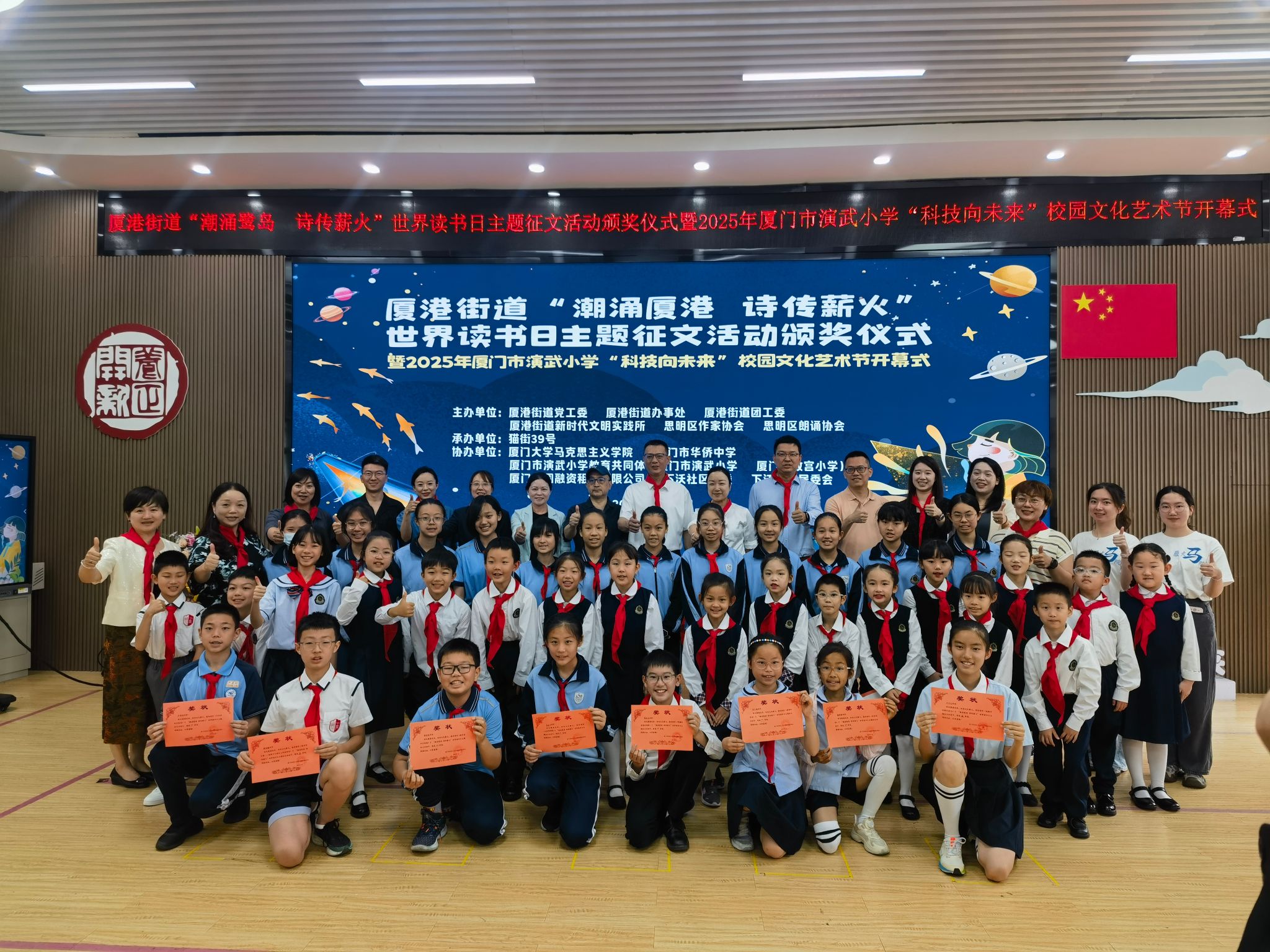 4月21日上午,2025年厦港街道“潮涌厦港 诗传薪火”世界读书日主题征文活动颁奖仪式暨厦门市演武小学“科技向未来”校园文化艺术节开幕式在演武小学隆重举行。厦门大学马克思主义学院2023级硕士研究生第一、第二党支部党员积极参与此次活动,用实际行动推动思政教育从理论课堂走进社区一线,融入社会文化场景。
