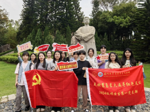 为迎接五四青年节,2025年4月27日,2024级硕士生第一党支部开展“传承五四薪火 追寻红色足迹”主题党日活动。支部成员们通过实地探访厦门大学的红色遗址、重温革命历史、分享入党初心,进一步强化身份意识,赓续红色血脉,坚定理想信念。
