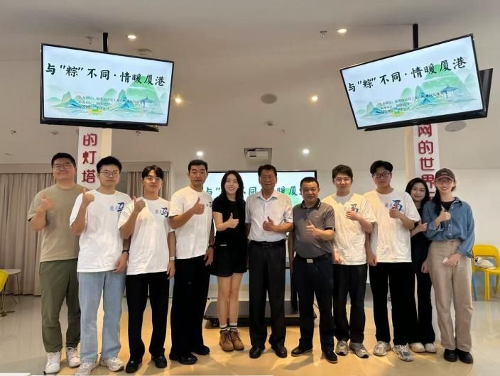 在互动环节,支部党员积极参与胡老师自创的闽南语民谣《扒龙船》教学,青春朝气与方言韵律相互碰撞,共同唱响“凤凰花开、粽叶飘香”的闽南端午图景,用歌声勾勒出文化传承的生动画面。