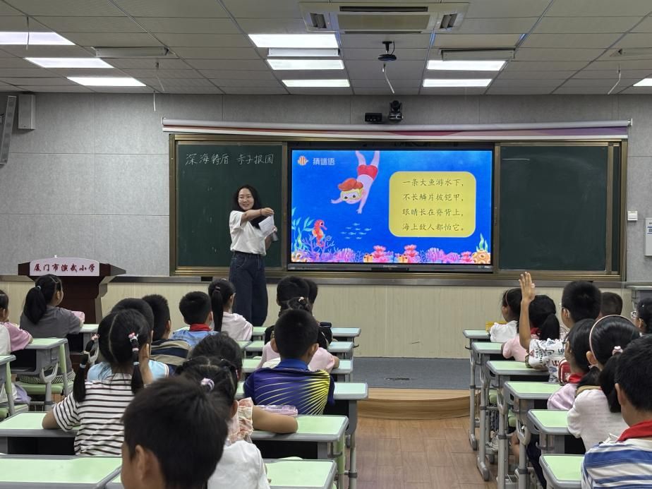 为推进大中小学思政课一体化建设,引领青少年从小厚植家国情怀、树立科技报国志向,2025年6月18日上午,2023级硕士研究生第一、第二党支部党员走进厦门市演武小学三年级课堂,开展了“深海铸盾 赤子报国——向黄旭华爷爷学习”主题微党课活动。此次活动以“中国核潜艇之父”黄旭华的感人事迹为生动教材,将崇高的科学家精神与科技强国信念播撒进小学校园。