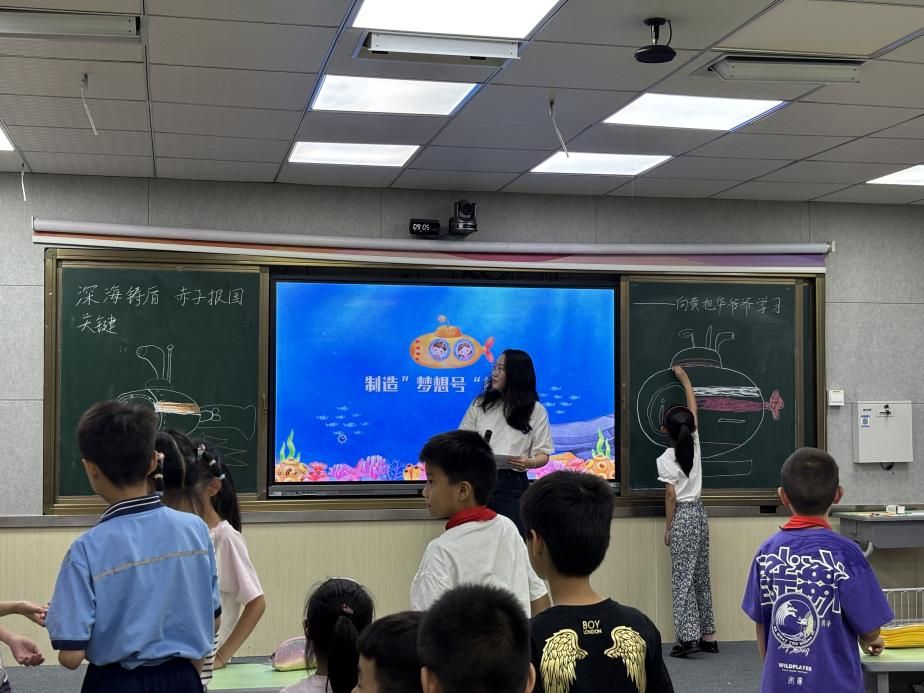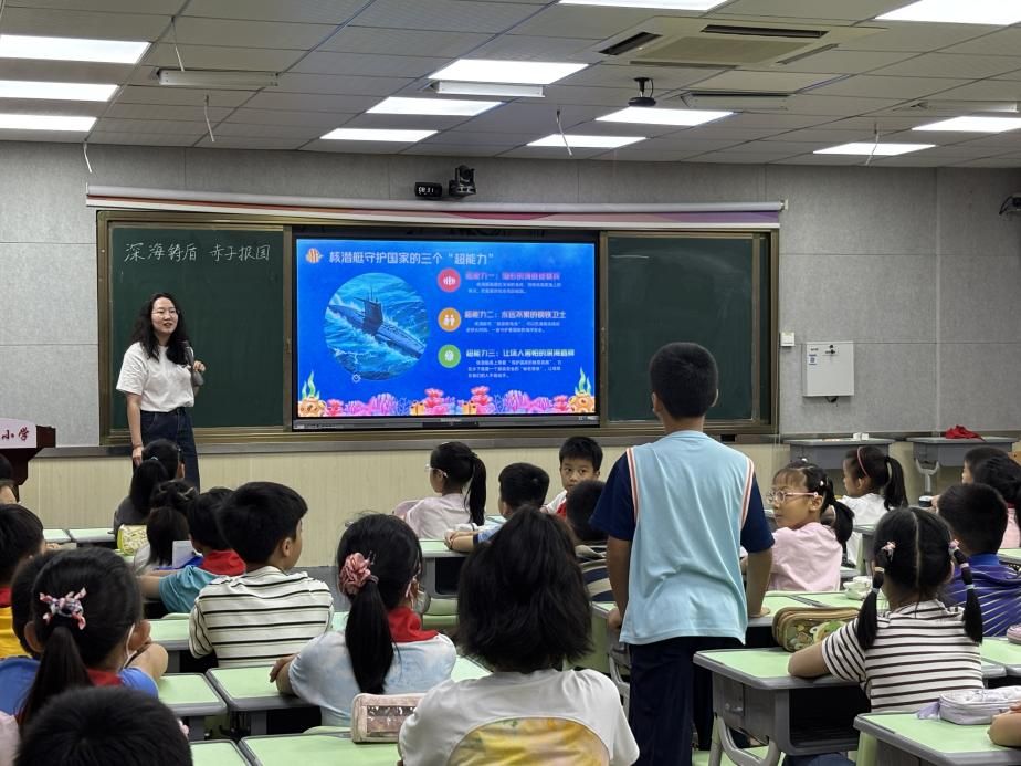 宣讲现场,支部党员林丽佳化身“思政老师”,她以一则谜语点燃课堂热情,巧妙引出“核潜艇”这一国之重器。她借助生动的比喻和震撼的视频资料,将复杂的科技知识变得直观易懂,在孩子们心中种下向往科学的种子。