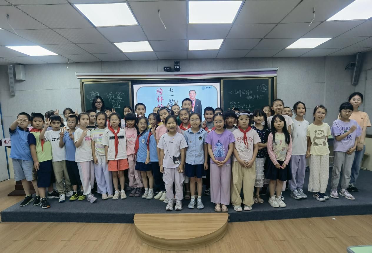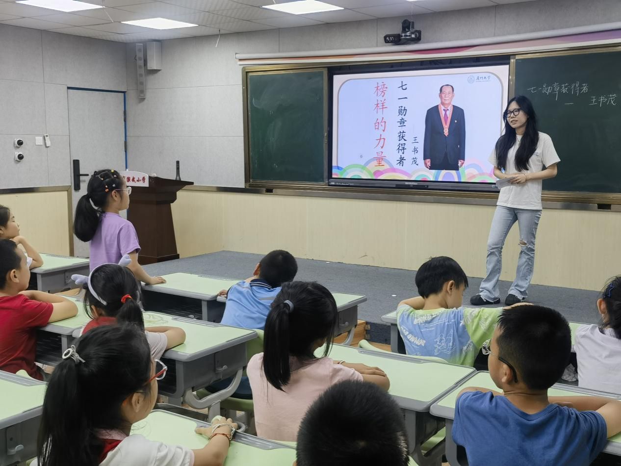 为培养青少年的海洋权益保护意识和爱国情怀,2025年6月18日下午,2023级硕士研究生第一、第二党支部党员走进厦门市演武小学三年级课堂,开展“守卫南海家园,书写爱国情怀——向王书茂爷爷学习”主题微党课活动。此次活动旨在向学生们介绍渔民党员王书茂的故事,引导学生树立报国强国伟大志向。