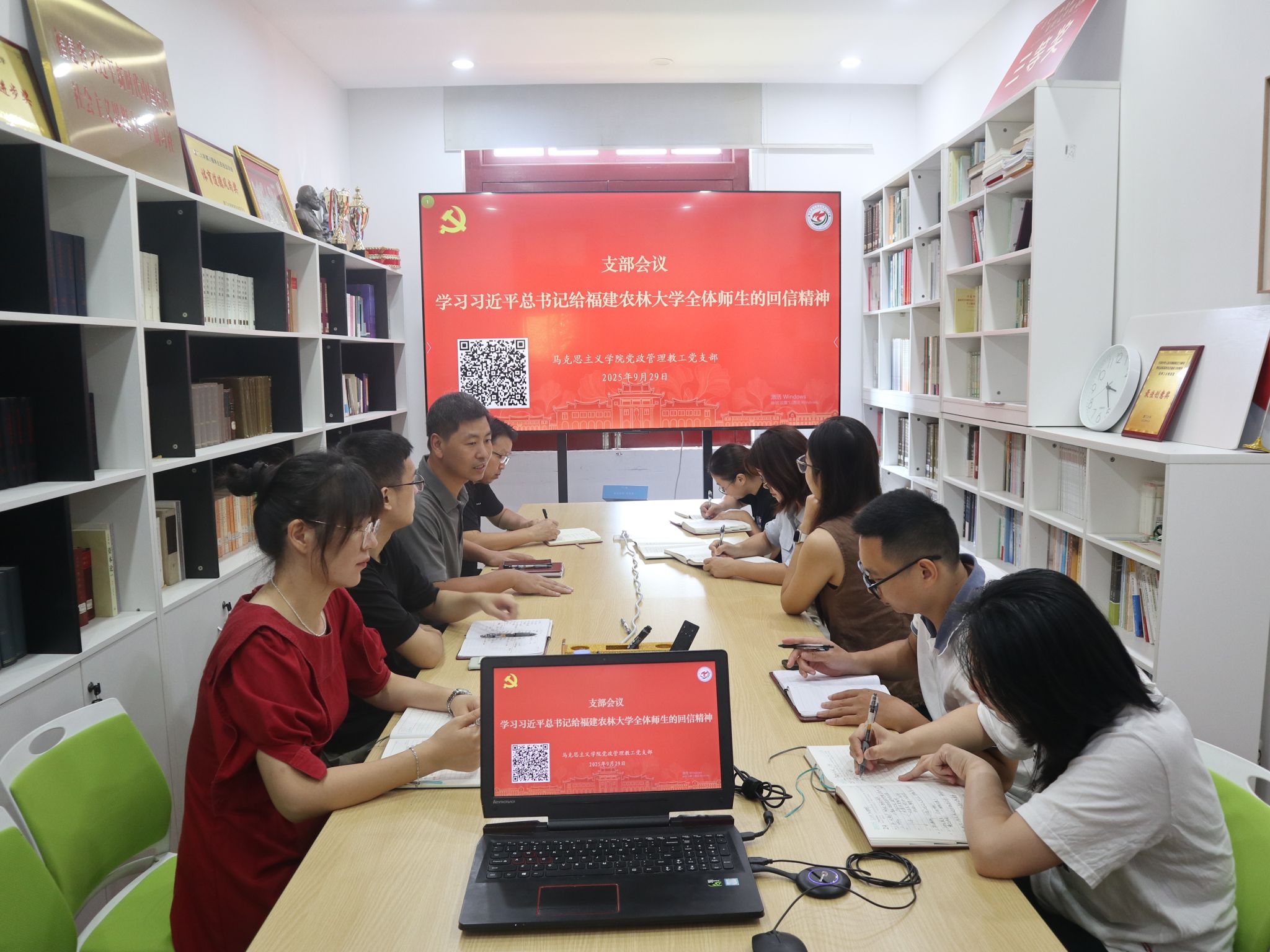 9月29日上午,党政管理教工党支部在囊萤楼225研讨室召开专题学习会,组织全体党员集体学习习近平总书记给福建农林大学全体师生回信精神。会议由党支部书记刘晓峰主持。