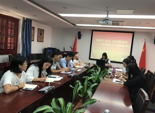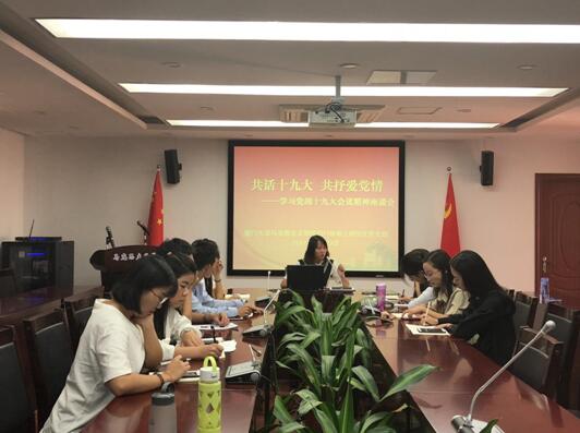 2017年10月23日上午,2017级硕士研究生党支部以“共话十九大,共抒爱党情”为主题,在囊萤楼302会议室举行了学习党的十九大精神座谈会。此次会议由2017级硕士研究生党支部书记林丹主持,参会人员为2017级硕士研究生党支部全体党员。