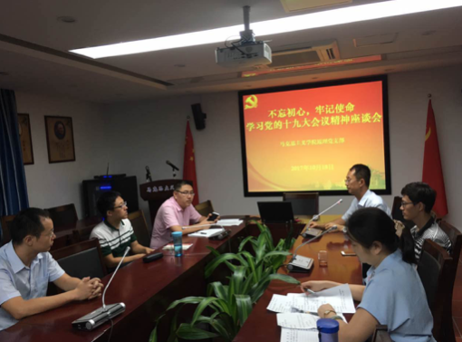 2017年10月18日晚上,马克思主义基本原理党支部在囊萤楼302会议室召开“不忘初心、牢记使命”学习党的十九大精神座谈会。会议由原理党支部书记林密同志主持。