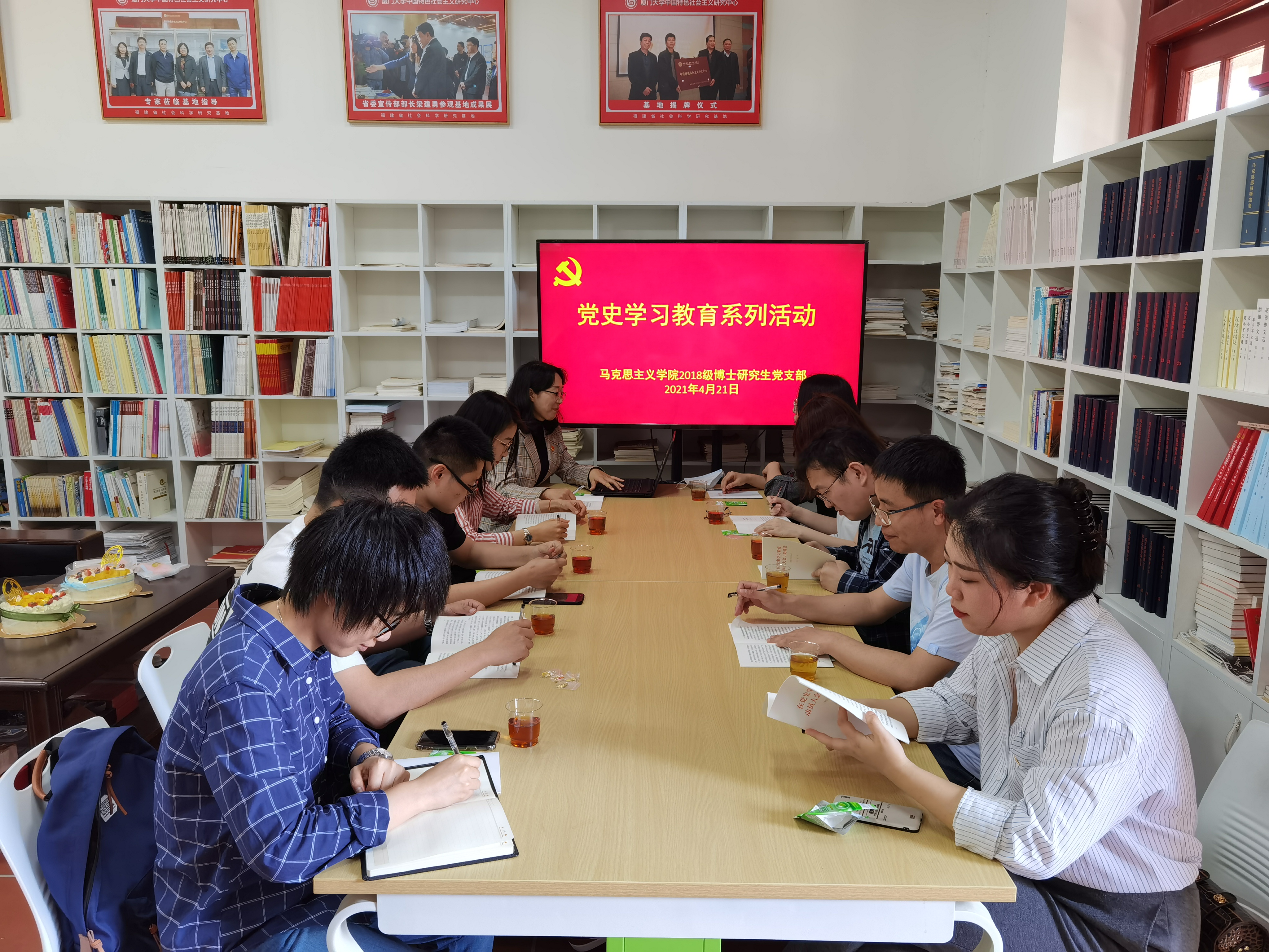 开展党史学习教育以来,2018年博士研究生党支部深入学习领会总书记在党史学习教育动员大会上的重要讲话精神,努力从党史学习教育中,感悟初心使命,汲取奋斗力量。4月21日下午,支部召开党史学习教育。