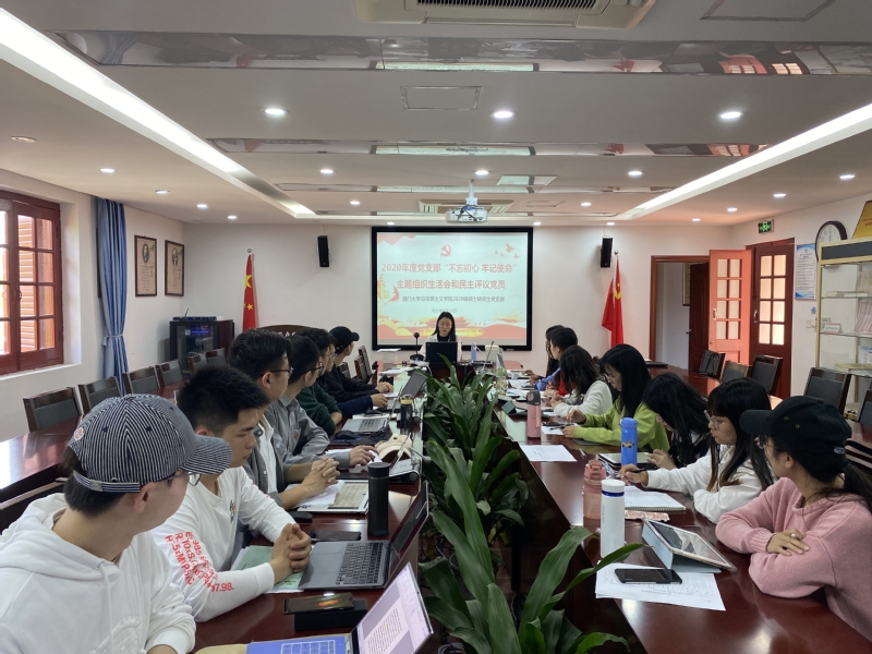 会前,为确保组织生活会和党员民主评议工作顺利举行,支部组织党员围绕习近平总书记系列重要讲话精神、党章、两会精神、厦门大学党史学习教育动员大会讲话精神及党内相关法律法规开展了一系列理论学习活动。此外,支部书记与支委班子成员之间、支委班子成员与支部党员之间、支部党员与党员之间也开展了广泛深刻的交心、谈心活动,为会议的召开奠定了良好的思想基础。