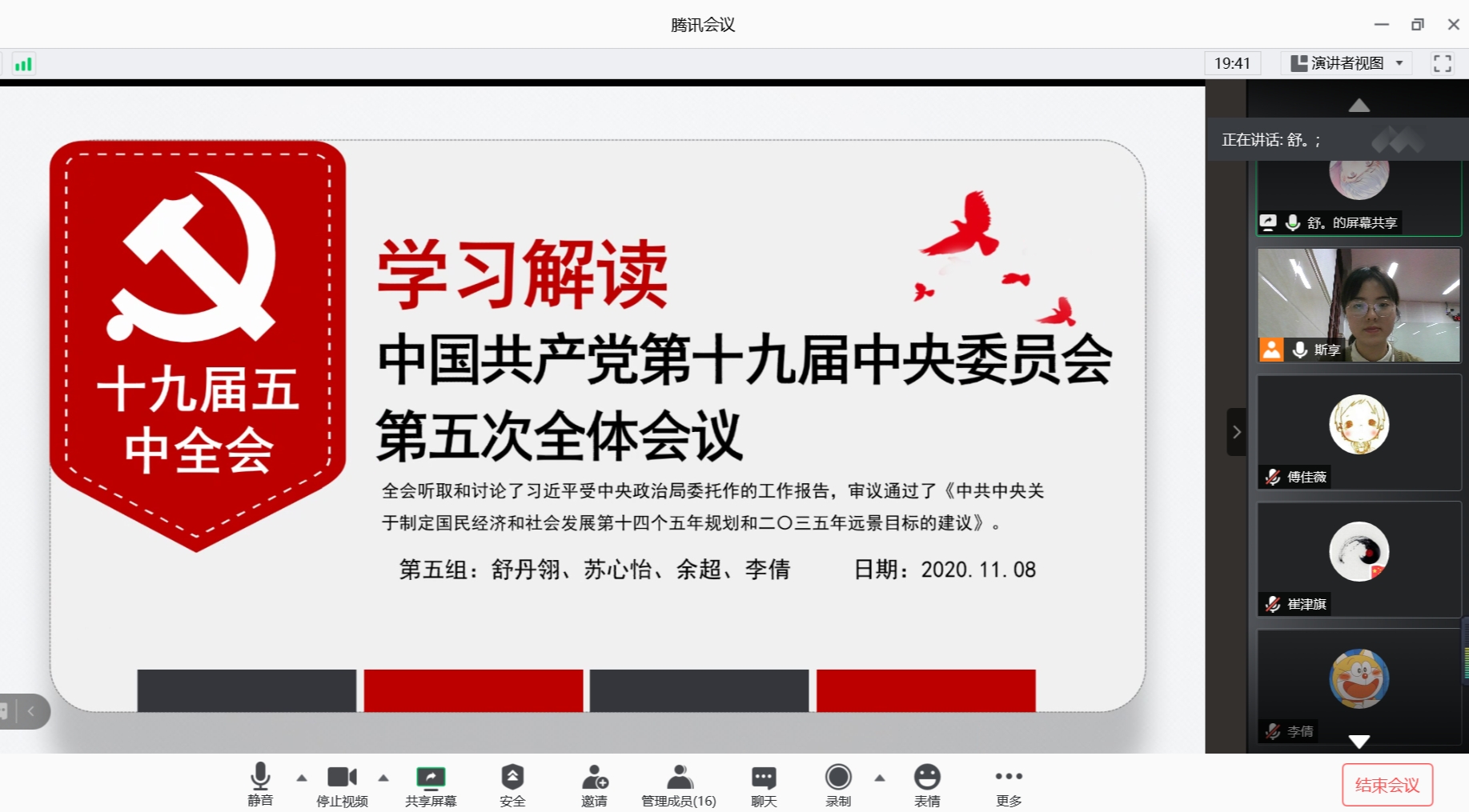 舒丹翎、苏心怡、余超、李倩四位同志进行主讲,从不同角度带领大家学习十九届五中全会精神。