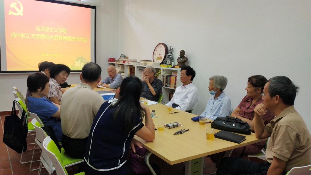 2020年10月9日,马克思主义学院退休教工支部在囊萤楼225研讨室召开党员大会选举新一届支部委员会。学院党委书记侯利标出席会议,大会由退休教工支部书记吴凌主持。