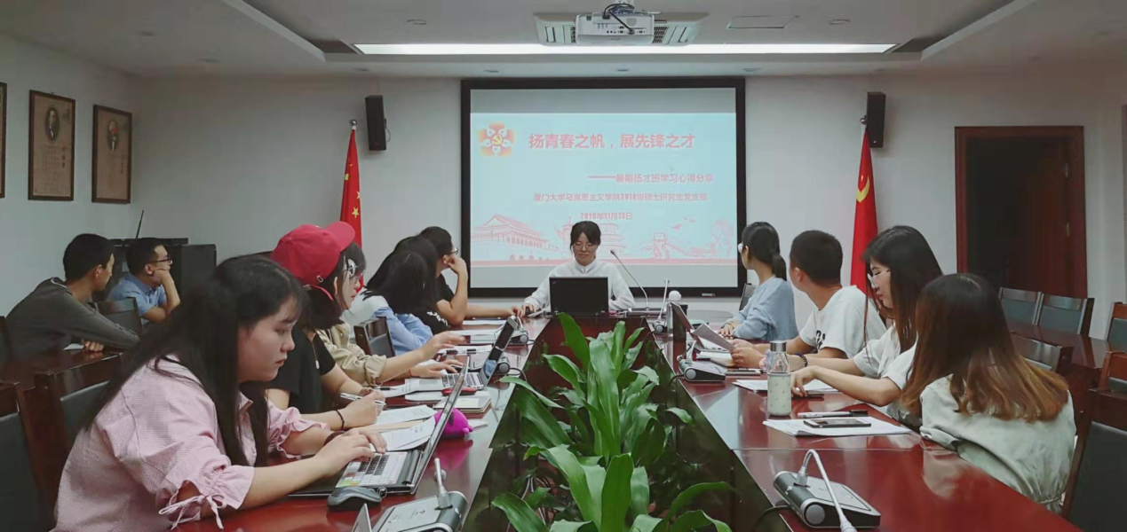 会议伊始,支部书记陈斯和大家分享了在厦门大学首期“扬才班”社会实践的学习心得,分别讲述了在“扬才班”社会实践时见缝插针式的学习之路、革命友谊的炼成之路以及自身党务能力的提升之路。据此,陈斯还重点向党员同志作了“坚定理想信念”的报告,陈斯提到,坚定理想信念是思想建党的重大课题,心中有信仰,脚下才能更有力量。通过在“扬才班”的社会实践学习活动,使自己得以在现场教学和情景体验式教学等多样学习方式中深深融入红色革命基地,在瞿秋白烈士的革命精神、红军长征精神等一系列先进精神的洗礼下,既倾听了历史,感悟了英雄气息,也更加坚定了自己的入党初衷,更加坚定了自己的理想信念。