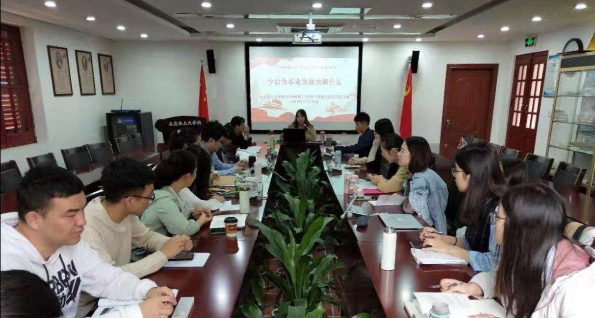 2019年11月16日上午,马克思主义学院2016级博士与2017级硕士研究生党支部在囊萤楼302会议室开展“今后为事业发展贡献什么”党日活动,活动由党支部书记林丹主持。