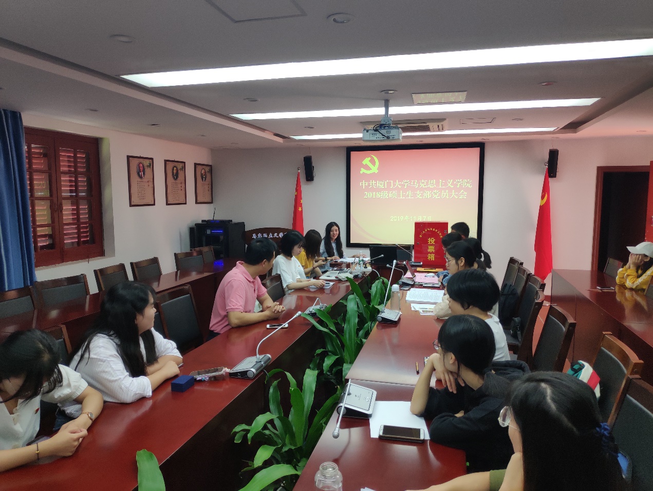 2019年11月7日,2018级硕士研究生党支部在囊萤楼302召开支部换届选举大会,学院团委书记蔡虎堂老师及支部15名党员同志与会,会议由支部书记李倩同志主持。