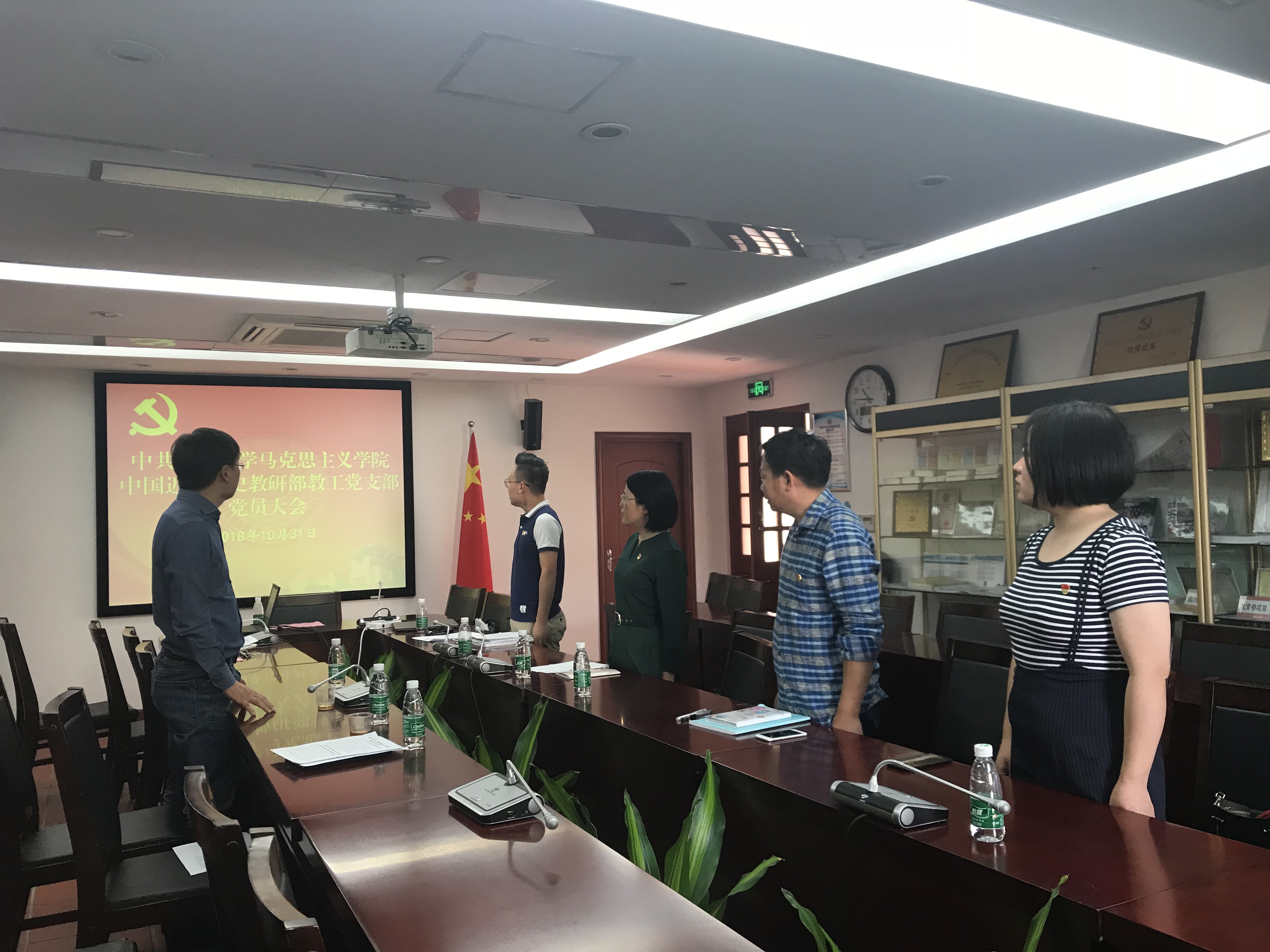 2018年10月31日上午,中国近现代史教工党支部在囊萤楼302召开了党支部党员大会,学院党委委员石红梅参加会议。