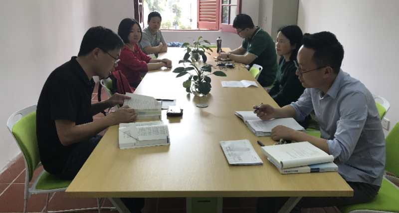2018年4月25日下午,近现代史教研部党支部在囊萤楼225研讨室召开十九大精神“三进”工作与2018版教材讨论会。党支部全体党员同志参加会议,支部书记佳宏伟同志主持讨论。