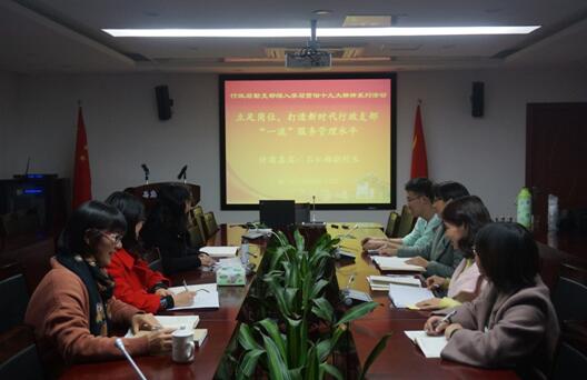 12月14日下午,行政后勤支部在囊萤楼302会议室开展题为“立足岗位,打造新时代行政支部‘一流’服务管理水平”的学习讨论活动,活动邀请到石红梅副院长进行指导,行政后勤党支部党员参加了此次活动。