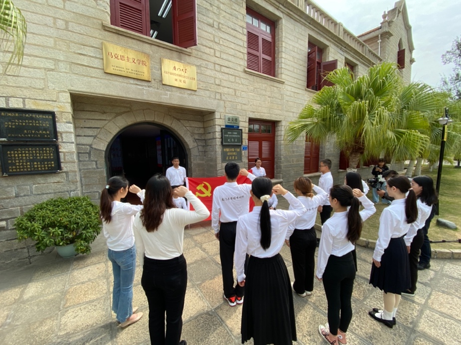 重温誓词忆初心,筑牢信仰记使命。一句句誓词铿锵有力,久久回荡在厦门大学囊萤楼前。为进一步引导党员坚定理想信念,以实际行动彰显工作本色,4月14日,支部组织开展“重温入党誓词”主题党日活动,在厦门大学革命历史的初心处、福建省第一个党组织的诞生地囊萤楼前,面向党旗郑重宣誓。同学们纷纷表示,在今后的工作、学习、生活中要以昂扬的士气、进取的心态和创先争优的精神践行入党誓词,以实际行动去恪守对党的承诺、立足本职。同时在社团中争做先进榜样,为社团其他同学树立学习楷模。