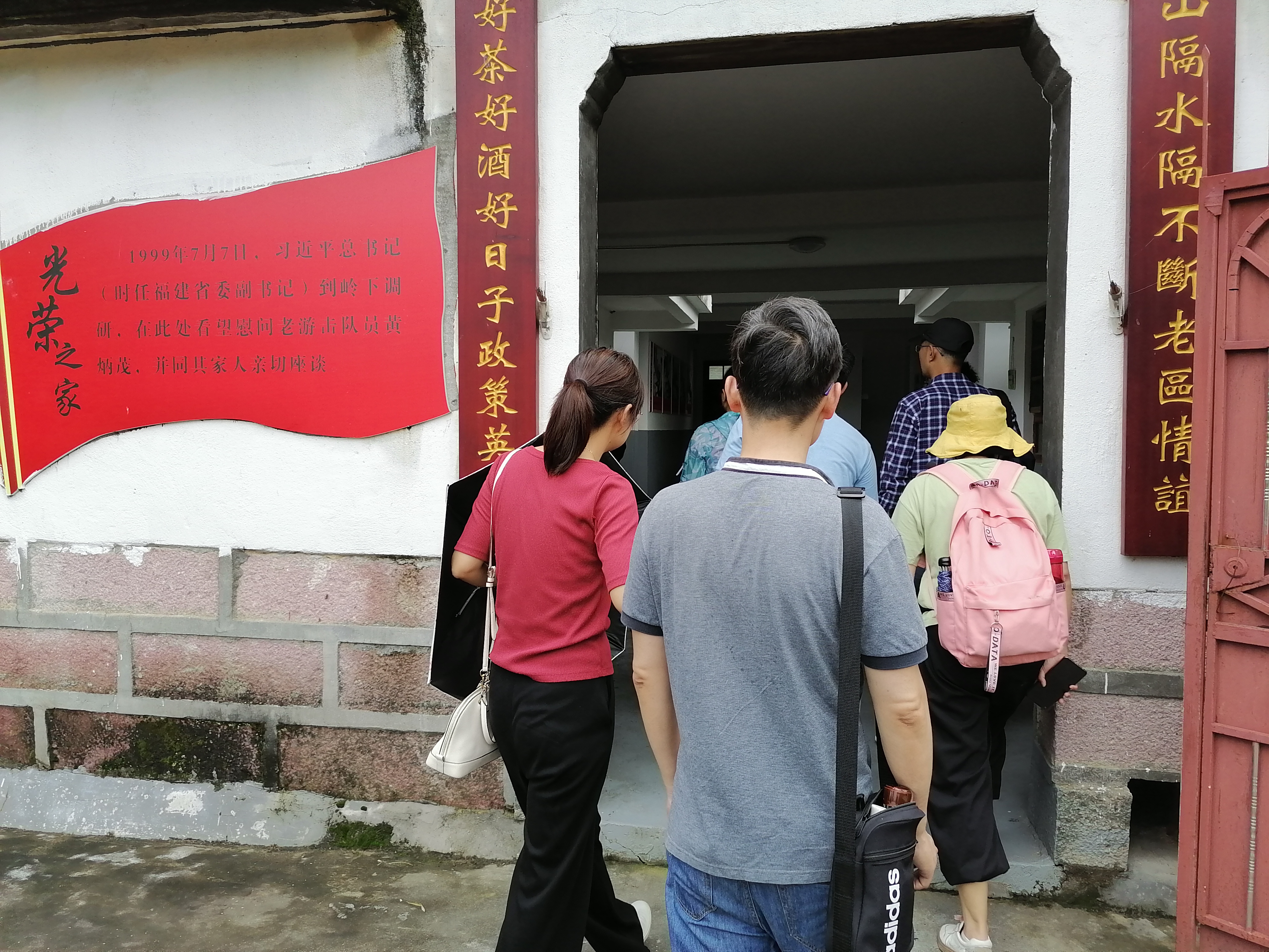 下午,支部党员前往泰宁新桥乡东部山区的革命老区岭下村,参观新开设的习近平老区事迹主题展厅,在初心公园党旗前重温入党誓词,并探访老游击队员黄炳茂旧居。当年泰宁县曾在红军的解放和带领下建立起苏维埃政权,其中岭下村也经历了轰轰烈烈的土地革命和反“围剿”战斗。1999年7月,习近平同志到岭下村调研,走进老游击队员黄炳茂家慰问,已经80多岁的黄炳茂拿出珍藏的米酒邀请习近平同志喝,此后每一年习近平都会托人给黄炳茂带两瓶好酒,直至老人离世。现在岭下村正依托红色旅游资源,发展农产品和餐饮等产业,原理支部成员还考察了当地烟叶的种植状况及其烘烤生产过程。