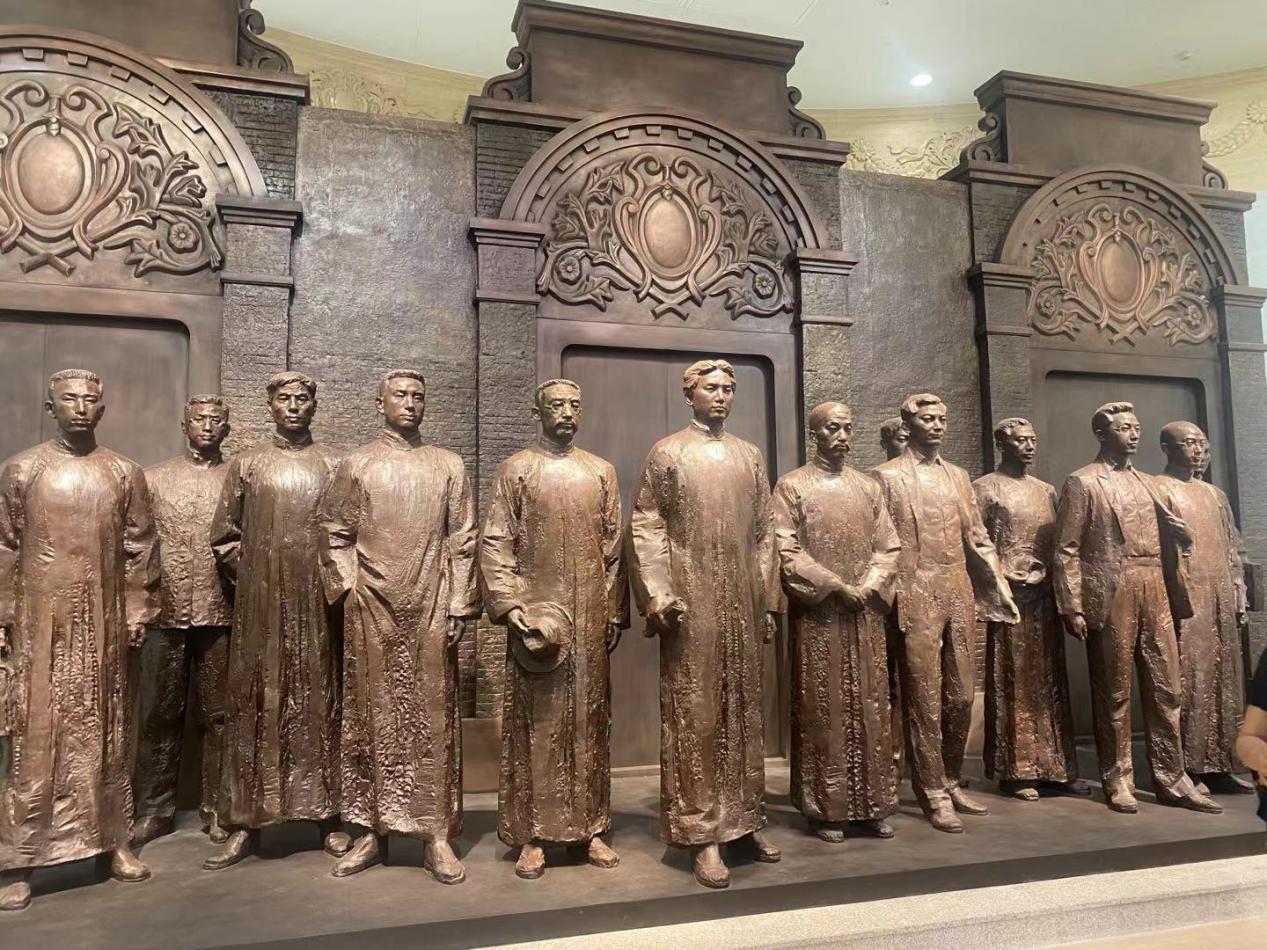 中共一大会址与中共一大纪念馆隔街相望、交相辉映,全景式地展现了中国共产党的创建历史,充分展示了中国共产党成为中国革命、建设、改革领导力量的历史密码,以此激励后人不忘初心、牢记使命。展厅正门内有一组中共一大会议13名代表走出石库门时青春勃发、踌躇满志的雕塑群。马克思主义中国化支部党员依次参观了“前仆后继救亡图存”“民众觉醒主义抉择”“早期组织星火初燃”“开天辟地日出东方”“砥砺前行光辉历程”“不忘初心、牢记使命永远奋斗”等6个板块的展览内容,在历史的影像和实物记载中回溯了中国共产党的曲折艰辛的诞生经过和百年奋斗的光辉历程。通过参观学习,党员们深深感受到从石库门到天安门,从兴业路到复兴路,从一叶扁舟到巨型航母,从十三名代表到一个百年大党,中国产生了马列主义共产党是开天辟地的历史大事变,从此深刻改变了中国人民和中华民族的前途和命运,决定性地改变了世界发展的趋势和格局。