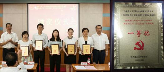 6月30日,在颂恩楼220报告厅,举行“两学一做”学习教育常态化制度化经验交流暨党支部工作“立项活动”优秀成果表彰会。我院2015级研究生党支部的立项活动——“关注理论热点,积极构建学习型基层党组织”获得优秀成果一等奖,受到表彰。