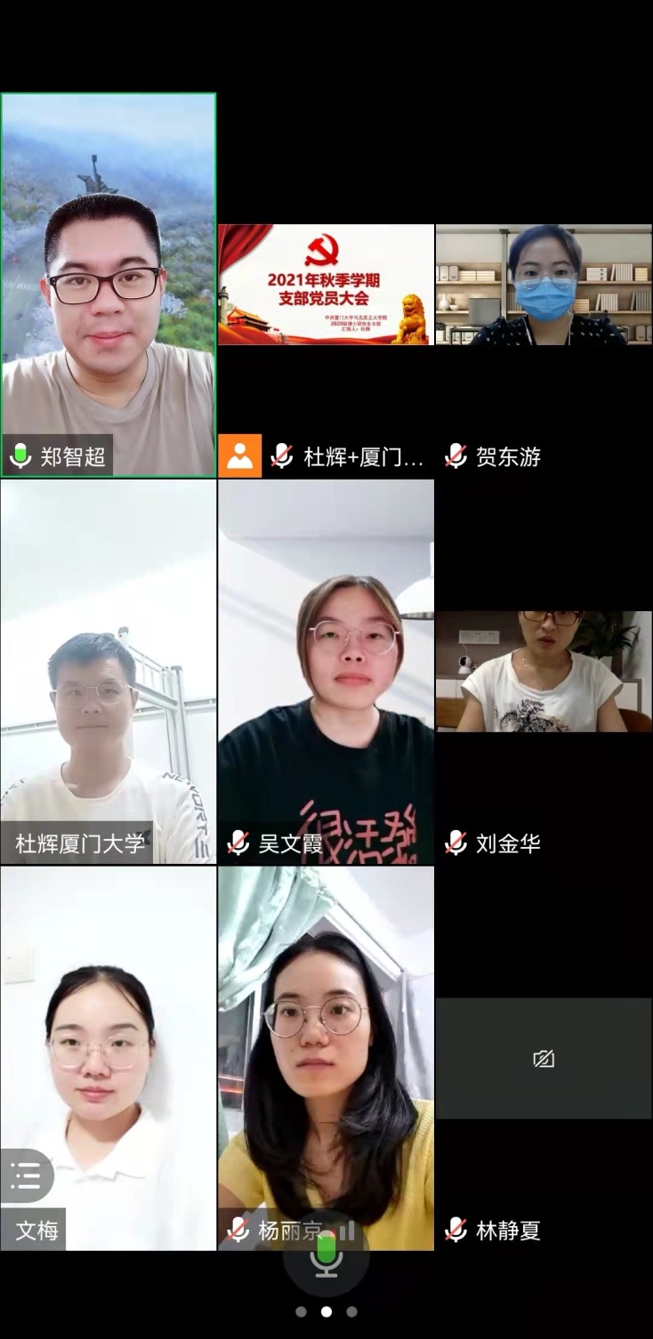 疫情就是命令,防控就是责任。会议的最后,支部组织委员刘金华向全体党员传达了近期学校党委发布的《关于在疫情防控工作中充分发挥全校各级党组织战斗堡垒作用和广大党员先锋模范作用的通知》,呼吁全体党员在此次疫情防控“厦门保卫战”中充分树立“我是党员我先上”的意识,勇当“关键时刻站得出来、危难时刻豁得出去”的排头兵,争做平安校园的守护者、防疫一线志愿者、科学防控的宣传者。