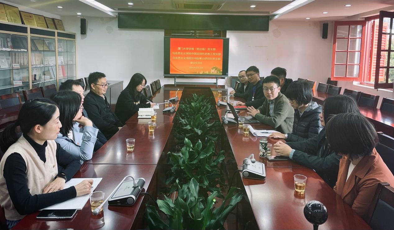 2021年12月13日上午,厦门大学学报(哲社版)党支部一行5人来到囊萤楼302会议室,与我院中国近现代史教工党支部、2018级博士生党支部开展共建交流活动。