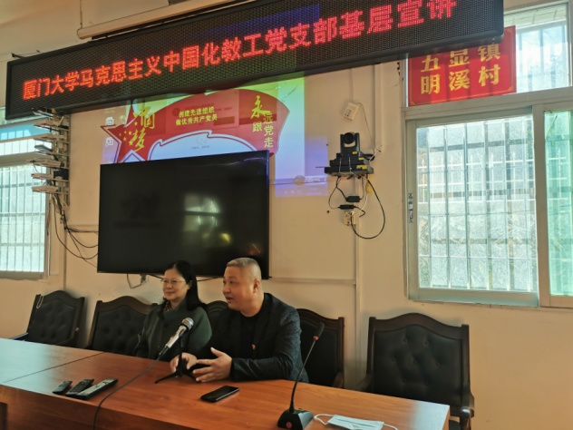 党员们首先参观明溪村委会,受到村委会成员和农民党员们的热烈欢迎。明溪村位于同安区五显镇东北部,北与泉州市南安县接壤,是五显镇最大的行政村,也是同安革命老区山区基点村,曾为中国革命建设作出突出贡献。近年来,明溪村先后荣获“厦门市城乡共建社会主义精神文明先进单位”“厦门市城乡共建先进单位”“同安区级文明村”等荣誉称号,2021年被确定为“市级乡村振兴试点村”。该村委会通过规划先行、产业支撑、市场运作、共同缔造,多渠道带动农民增收,全力打造田园美、村庄美、生活美、生态美的美丽乡村。